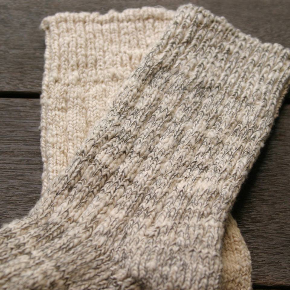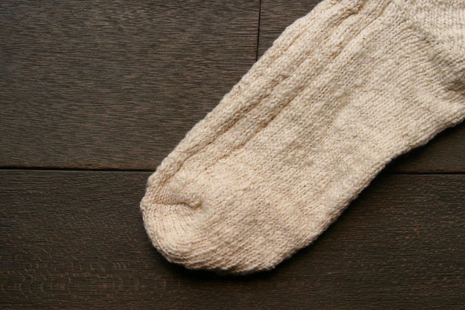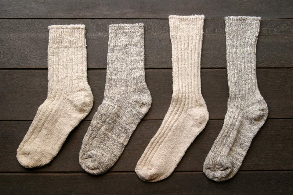 現代の機械では作ることができないその太くてふぞろいな糸から作られる靴下は、