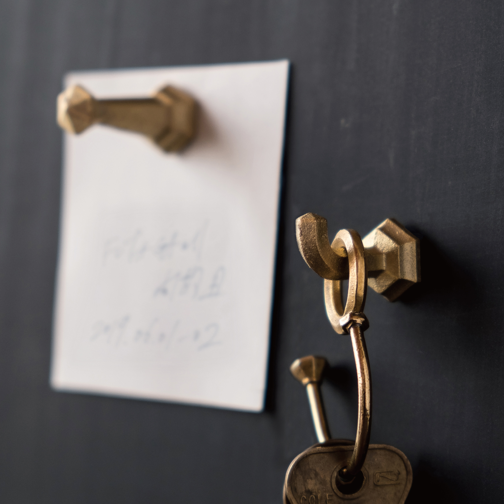 2019年11月29日 2カ月ほど在庫切れとなっておりましたFUTAGAMIのマグネットフックL型が本日再入荷いたしました。 2カ月ほど在庫切れとなっておりましたFUTAGAMIのマグネットフックL型が本日再入荷いたしました。 真鍮鋳肌でできた、ネオジム磁石を仕込んだフックです。磁石が付く面でお使いください。 玄関周りで鍵をかけたり、冷蔵庫周りで輪ゴムや栓抜きをかけたり、デスク周りでメモを留めておいたりできます。2個セットです。 ぜひご検討くださいませ。 https://www.shokunin.com/jp/futagami/magnethook.html