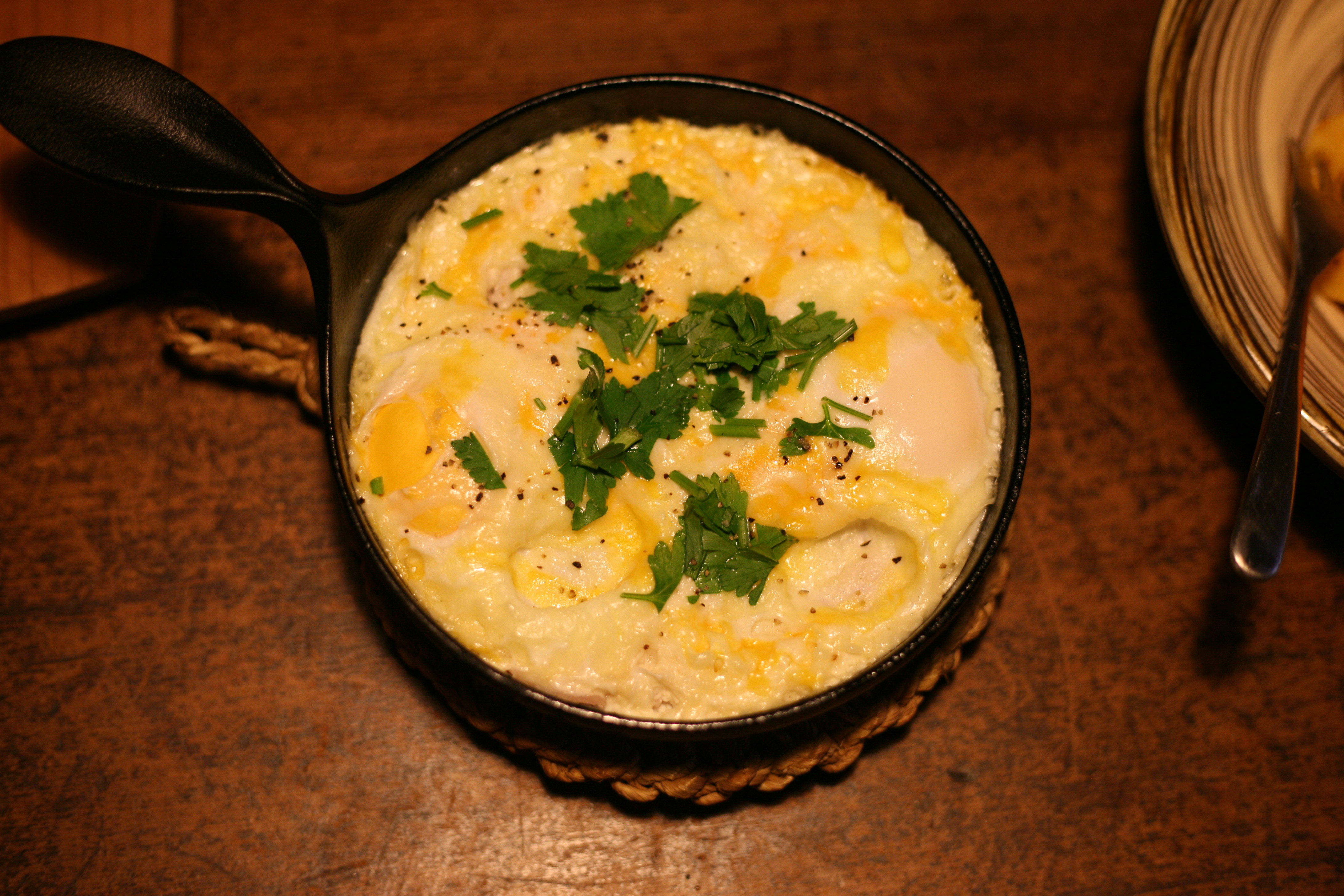 小笠原陸兆のふた付きミニパンで玉子とハムのココットを作りました。先日よりフランス系のスタッフが新しく加わり、フランスの家庭ではどんな料理を普段食べるのか聞いたところ紹介してくれました。生クリームとチーズを使うのがフランスっぽいです。