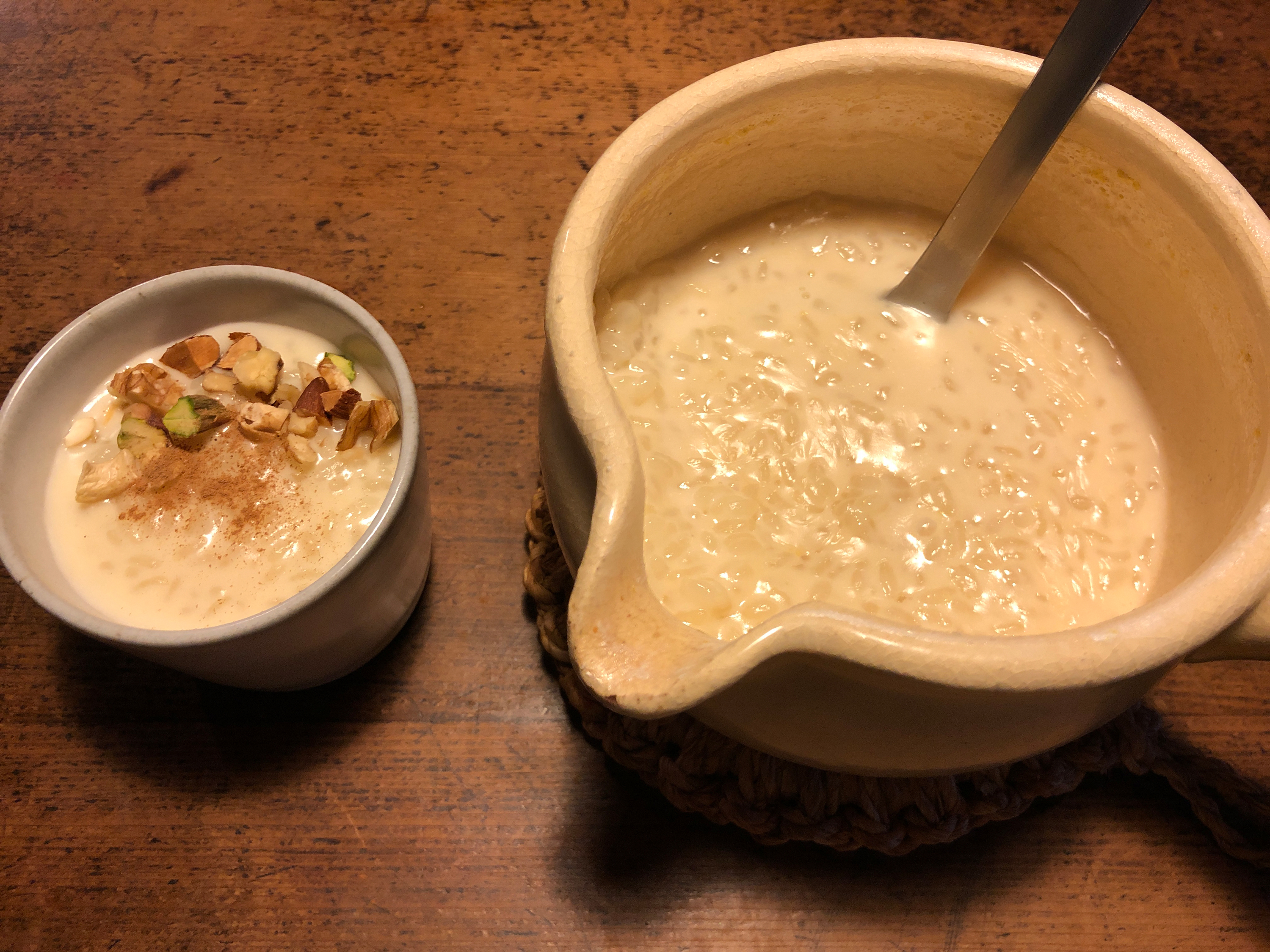 2020年12月31日 フランスのお米スイーツ、リオレを作ってみました。お米を主食とする日本人としては最初不思議な感じがしましたが、慣れるとおいしかったです。 フランスのお米スイーツ、リオレを作ってみました。お米を主食とする日本人としては最初不思議な感じがしましたが、慣れるとおいしかったです。文化の多様性は実に素晴らしいですね。これからも追求してまいります。 [材料(あたため鍋大で作りやすい分量2~3人分)] 米 80g 牛乳 350~400ml グラニュー糖 80g 塩 ひとつまみ レモンの皮 少々 バニラエッセンス 1~2滴 シナモンパウダーやフルーツソース [作り方] 1. 鍋に牛乳を入れ中弱火にし、砂糖を加える。 2. レモンの皮をすりおろす。 3. 塩を少々加える。 4. 洗って水を切ったお米を鍋に入れ、弱火にしてたまにかき混ぜながら30分程煮る。 5. お好みで冬は温かいまま、夏は冷蔵庫で冷やしてから器に盛りつける。 6. シナモンパウダーやフルーツソースなどをかけて出来上がり。 松山陶工場 あたため鍋 大 https://www.shokunin.com/jp/matsuyama/ 青龍窯 蕎麦猪口 https://www.shokunin.com/jp/seiryu/soba.html 参考レシピ https://furansu-go.com/riz-au-lait/ https://youtu.be/AFWWX881myk