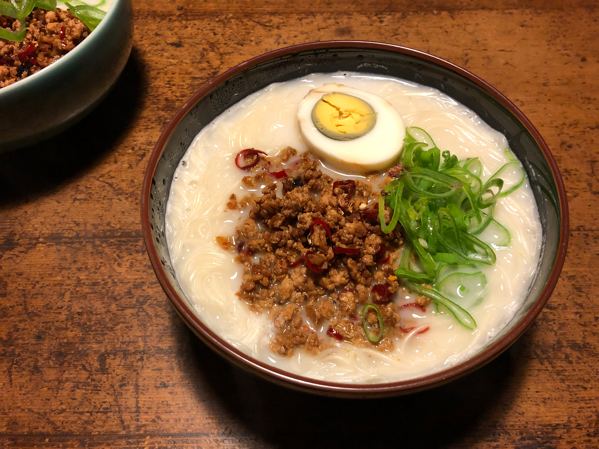 先日夜食に激辛の担担麺を作りました。白山陶器の5寸浅めん丼は軽く食べたいときに最適なサイズで、おかずにもお使いいただけます。天目(黒)に牛乳入りの白いスープが映えますね。