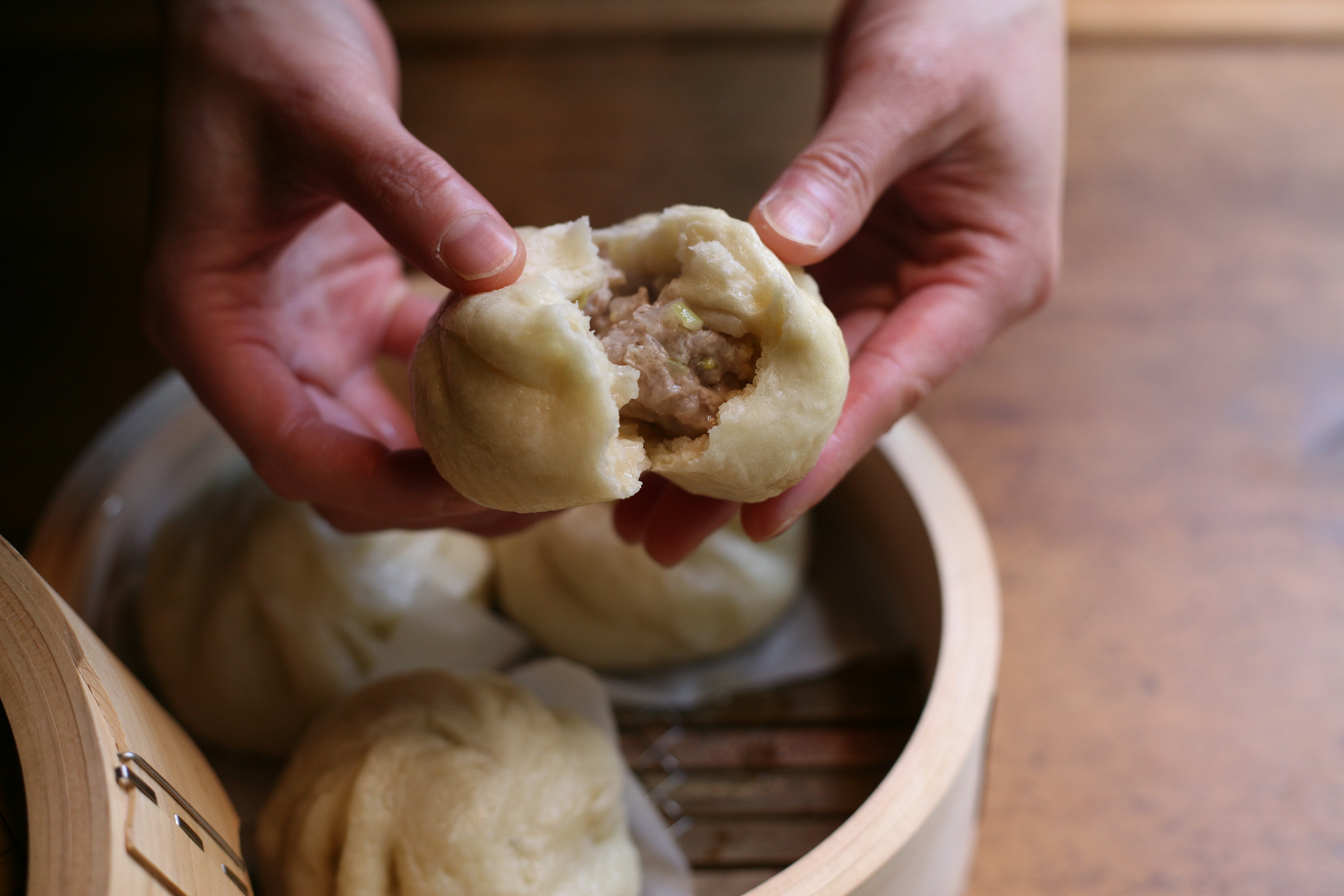 よく練った餡を丁寧に作った生地で包んだら、中華せいろに並べ、水の状態から火にかけて、沸騰後10分蒸し、火を切った後、5分余熱で蒸せば出来上がり。皮はモチモチで弾力があり、ジュワッと溢れる肉汁には美味しさがぎっしりで、とてもジューシーです。