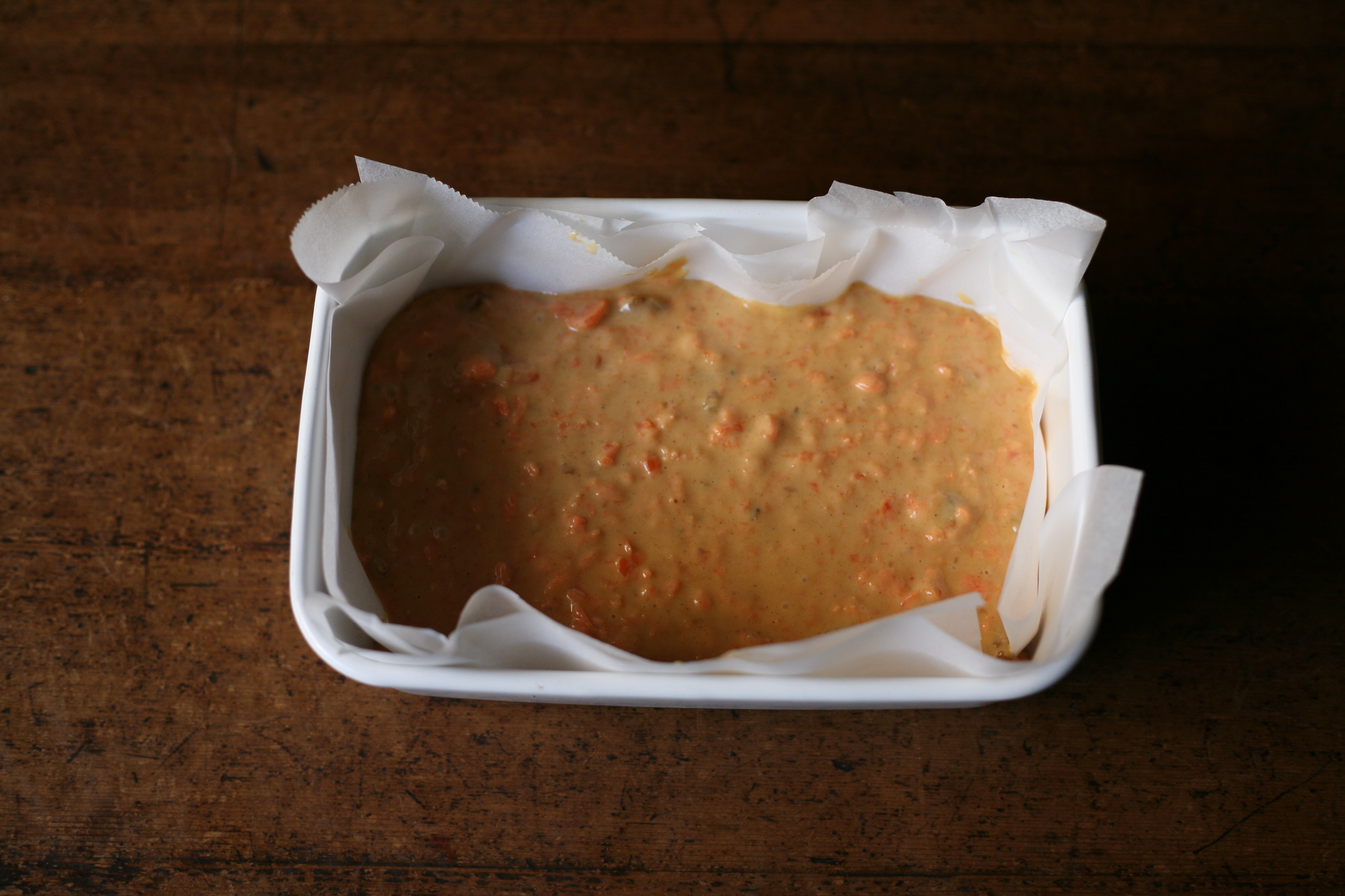 7. クッキングシートをしいた容器に生地を流し、180度のオーブンで40分焼く。