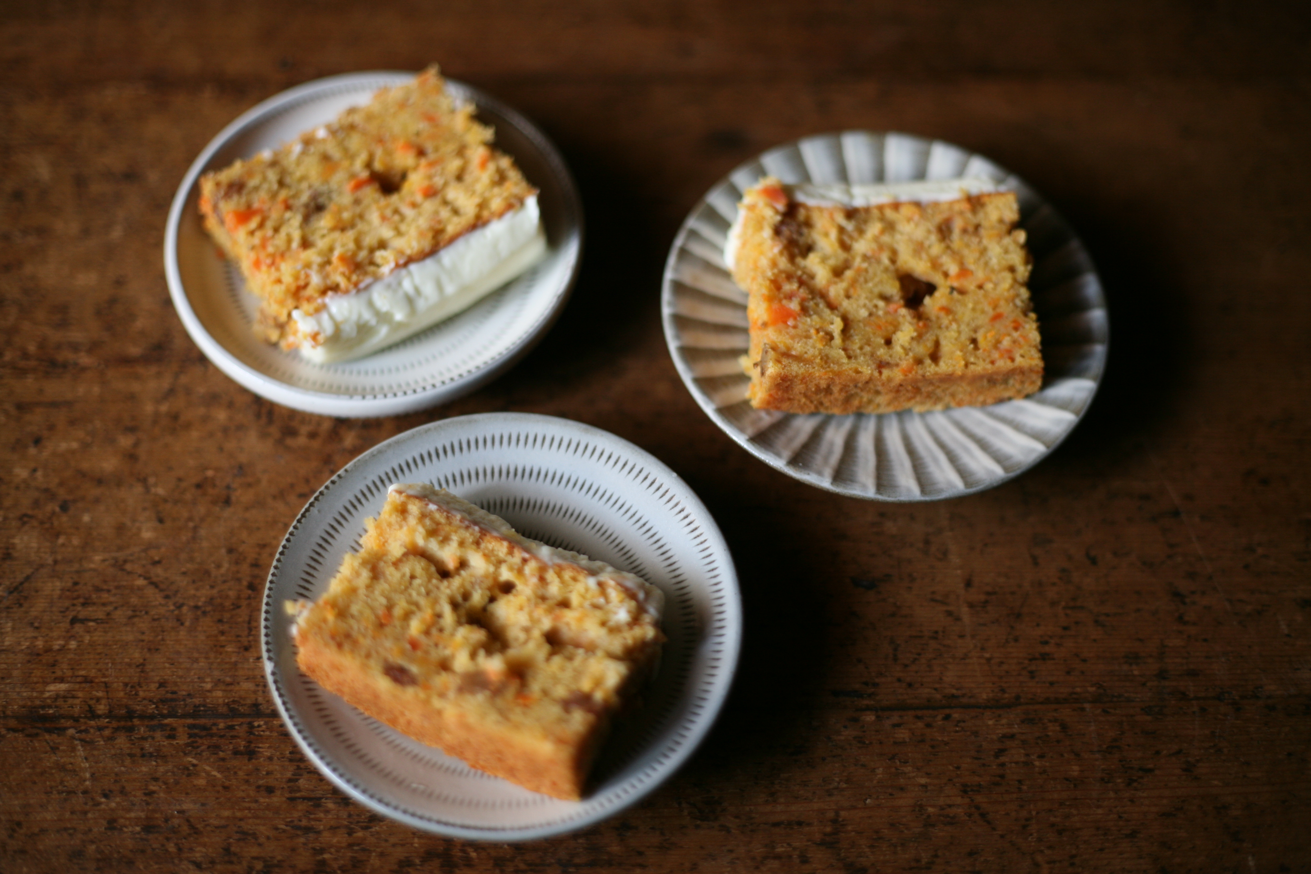 キャロットケーキのルーツは中世のヨーロッパにあります。当時、砂糖などの甘味料は希少で高価だったため、糖分が多く入手しやすい人参はデザートの甘み付けに古くから用いられてきました。イギリスでは、18~19世紀になると料理本にレシピが掲載されるようになり、第二次世界大戦時には配給の食料と自宅の菜園で採れる食材で作ることができるということでキャロットケーキの人気が復活しました。1960年代には、海の向こうのアメリカのレストランやカフェで販売が開始され、ケーキの上にたっぷりとクリームチーズフロスティングをのせるスタイルが流行し、今日に引き継がれています。