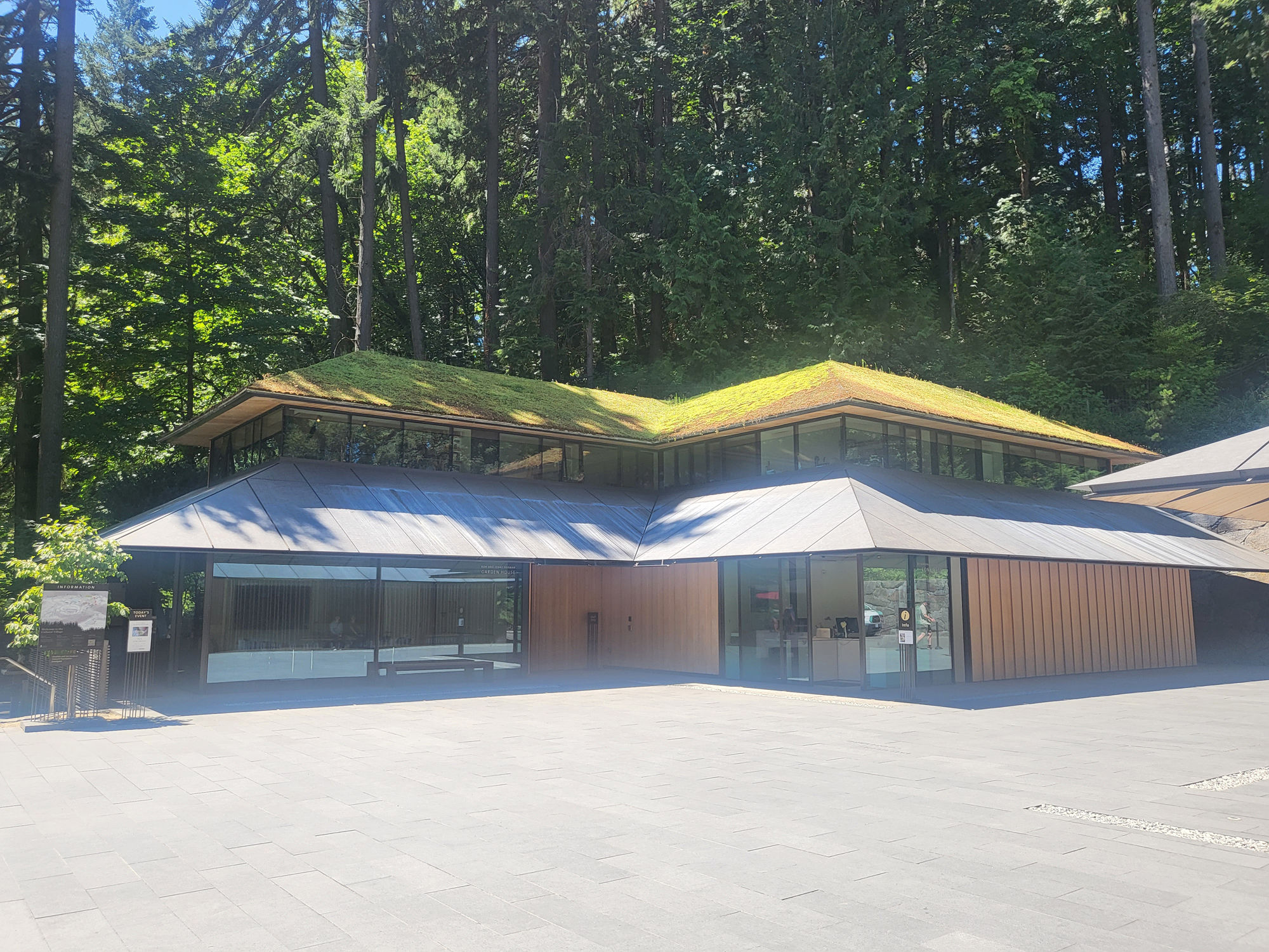 訪問時は、夏休み中だったこともあり、地元の人だけでなくアメリカ国内外から訪れた多くの観光客でにぎわっていました。日本にあるものと大差ない庭園の姿にも大変驚かされたのですが、オレゴン州の州木でもあるダグラスファー(ベイマツ)と融合する日本庭園の姿がとても美しく、唯一無二の景観を生み出していました。庭園の手入れをする方々も、手ぬぐいを頭に巻いて地下足袋と、かなり本格的。庭園内には、味の素社が運営する「Umami Café」や建築家・隈研吾氏が設計し、図書館やレクチャールームなどを併設する「カルチュラル・ビレッジ」などもあり、多角的に日本文化に触れることができるようになっています。私が訪れた日は、茶道のデモンストレーションも行われていました。