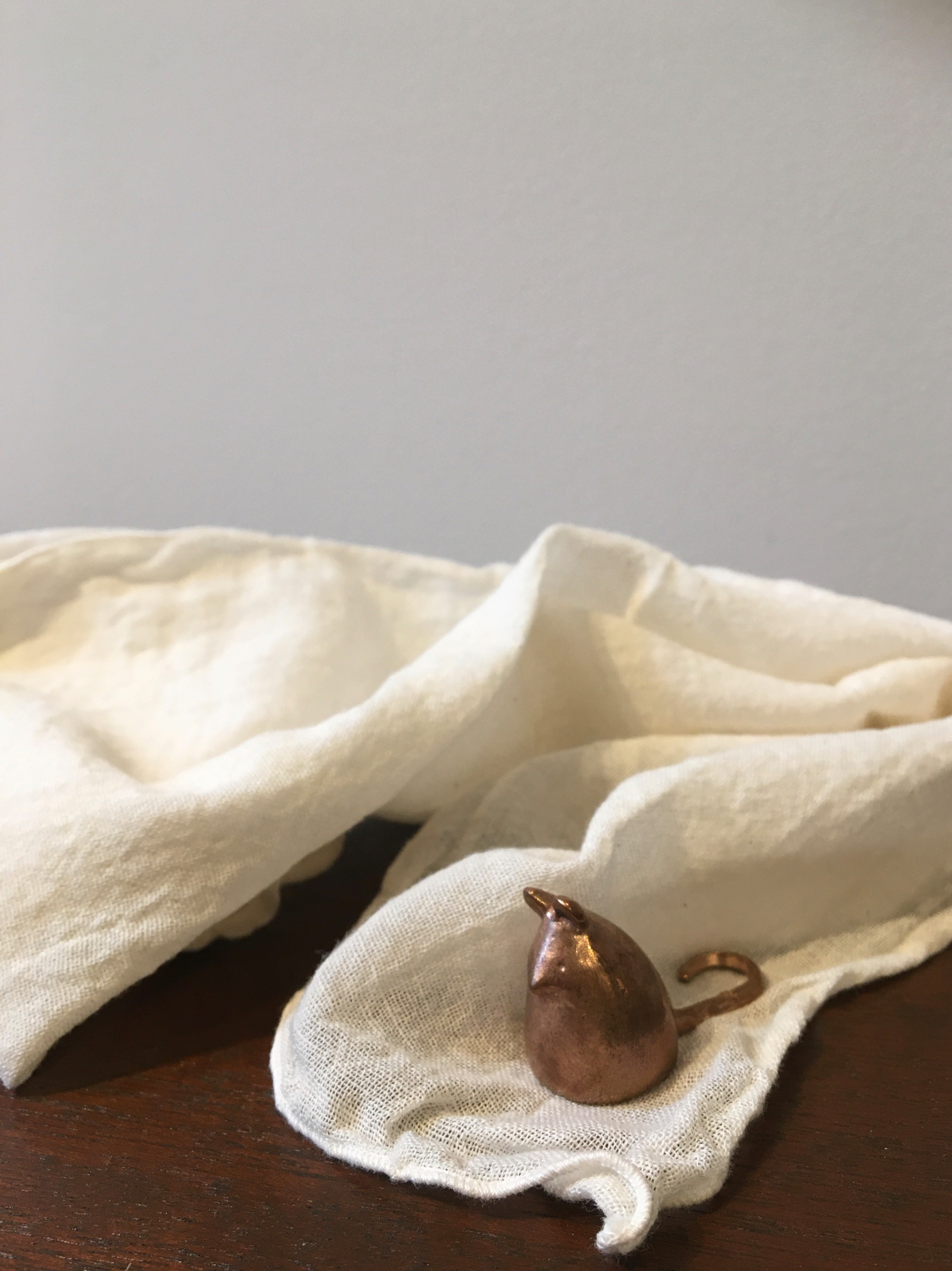 軽やかな手触りを味わっていると、小さいころ大好きだった『森の花嫁』というフィンランドの昔話を思い出しました。お話の中で、ねずみのお姫さまが、透けるように薄く美しい布を織り上げ、くるみの殻にしまって婚約者に渡す場面があるのです。くるみの殻に収まってしまうなんていったいどんな布なのだろうと、心をときめかせながら何度も読んだものですが、aoのハンカチは透けるように薄く柔らかで、まさにくるみの殻に入ってしまいそう。