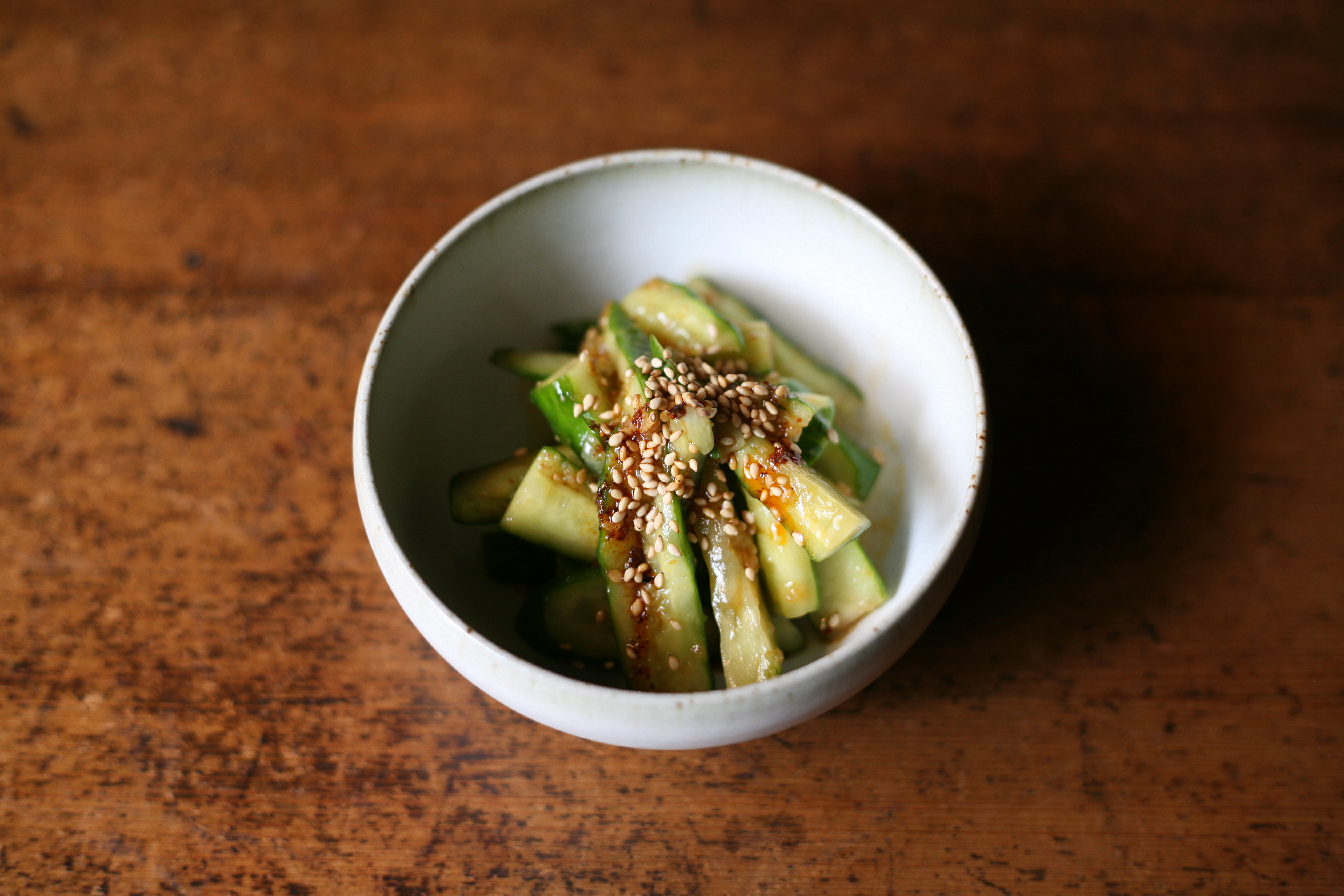 きゅうりは、薬膳では体を冷やす働きのある食材として分類されています。95%が水分で、カリウムも多く利尿効果もあり、体の内側の熱を外に運び冷やす作用があります。独特の青臭さはピラジンという成分によるもので、血流促進効果があり、体温調整に働くので熱中症の予防にも有効です。暑気払いにはきゅうりを食べるのが良さそうですね。