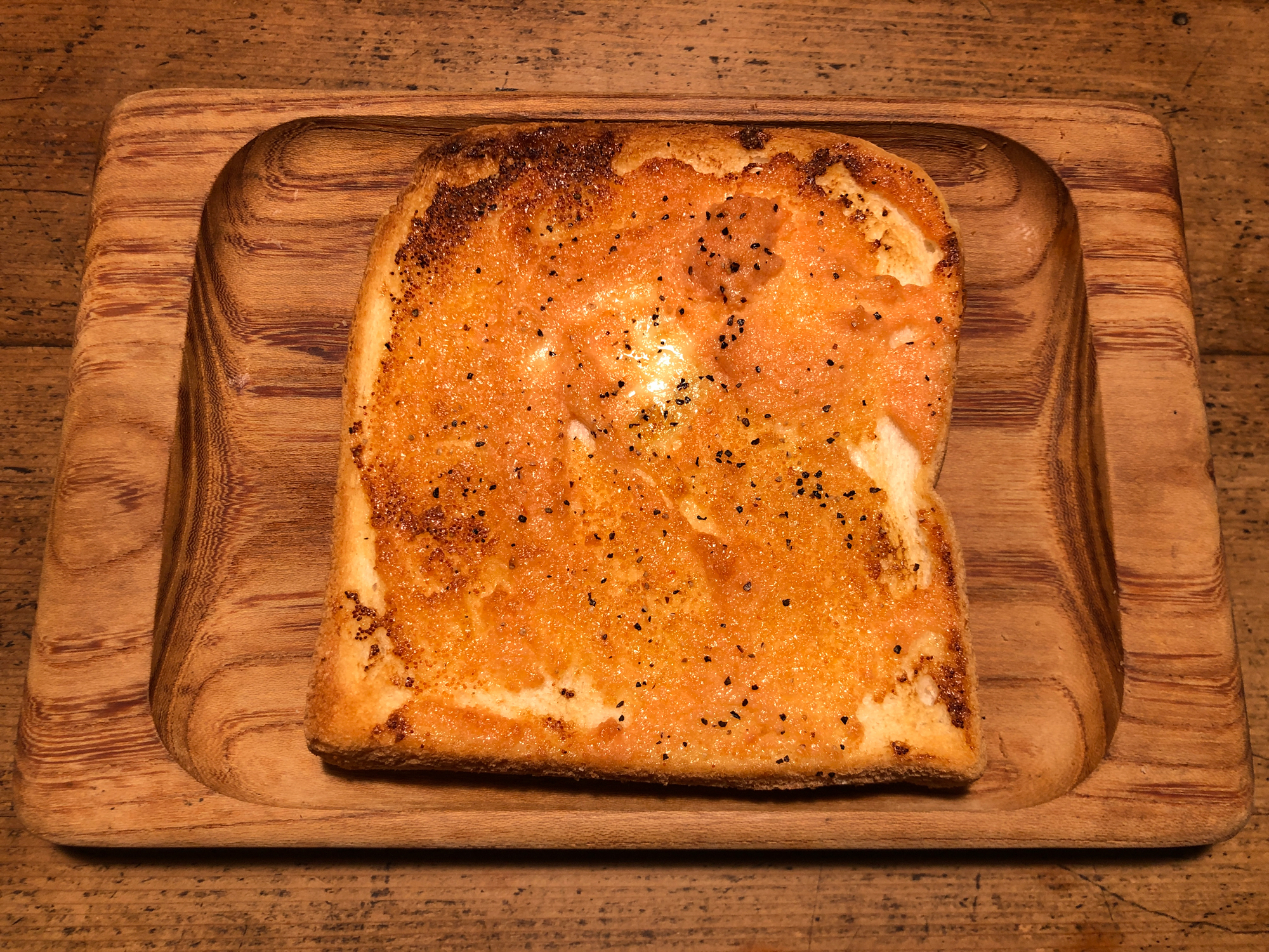 2025年03月01日 【明太マヨチーズトースト】ピリッとした明太子とクリーミーなマヨネーズ、そしてとろけるチーズ。この3つが冷蔵庫にあったら、明太マヨチーズトーストはいかがでしょうか? 【明太マヨチーズトースト】 ピリッとした明太子とクリーミーなマヨネーズ、そしてとろけるチーズ。この3つが冷蔵庫にあったら、明太マヨチーズトーストはいかがでしょうか? 明太子をマヨネーズと混ぜて食パンに塗り、お好みでチーズをのせ、黒胡椒を振ったら、焦げないように様子を見ながら、チーズがとろけるまで加熱して出来上がり。 香ばしく焼けたら、お気に入りのパン皿にのせて、アツアツのうちにどうぞ! もやい工藝 ケヤキのパン皿 https://www.shokunin.com/jp/moyai/