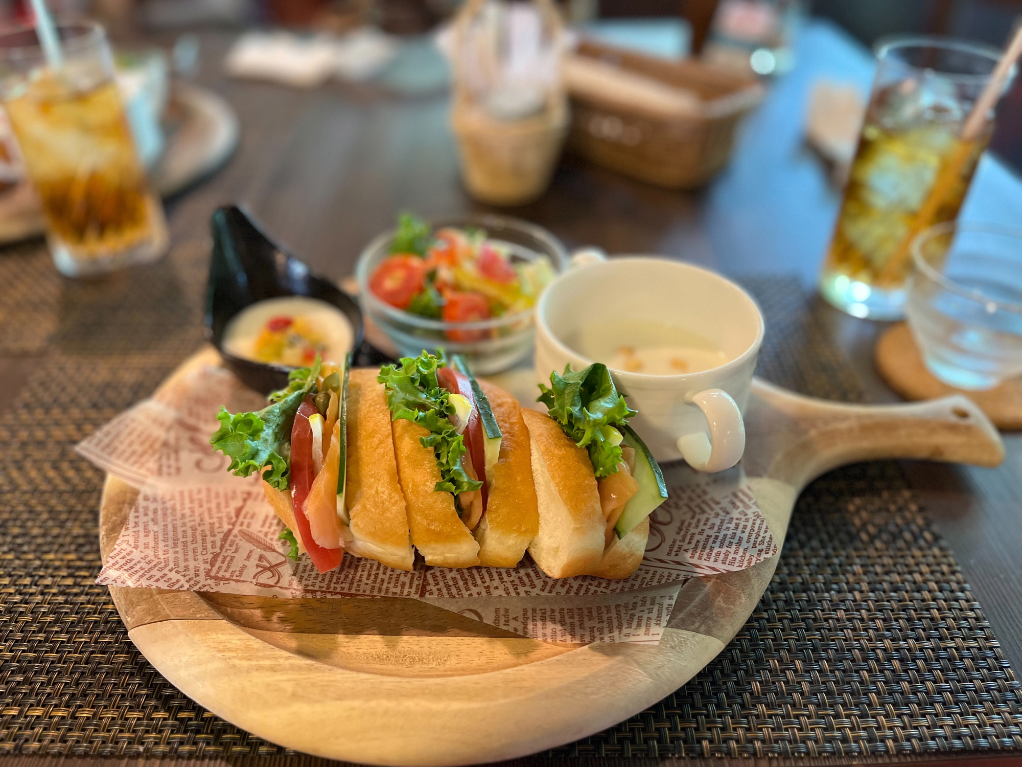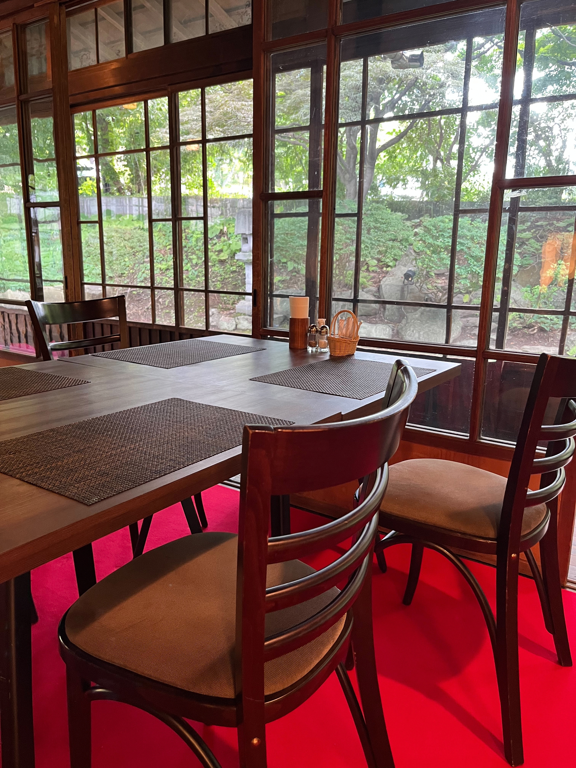 そんな歴史ある公会堂と能楽堂の一角に、期間限定でオープンしているのが能カフェです。古い日本家屋を再利用した空間で、畳敷きの部屋からは手入れされた日本庭園を眺めることができ、ランチやアフタヌーンティー、夜にはお酒も楽しめる贅沢なひとときを提供しています。店内は静かで落ち着いた雰囲気に包まれ、訪れた人々が思い思いの時間を過ごしていました。隣の席からは「期間限定じゃなくて、ずっと続けてほしい」という声も聞こえ、私も心から同感でした。