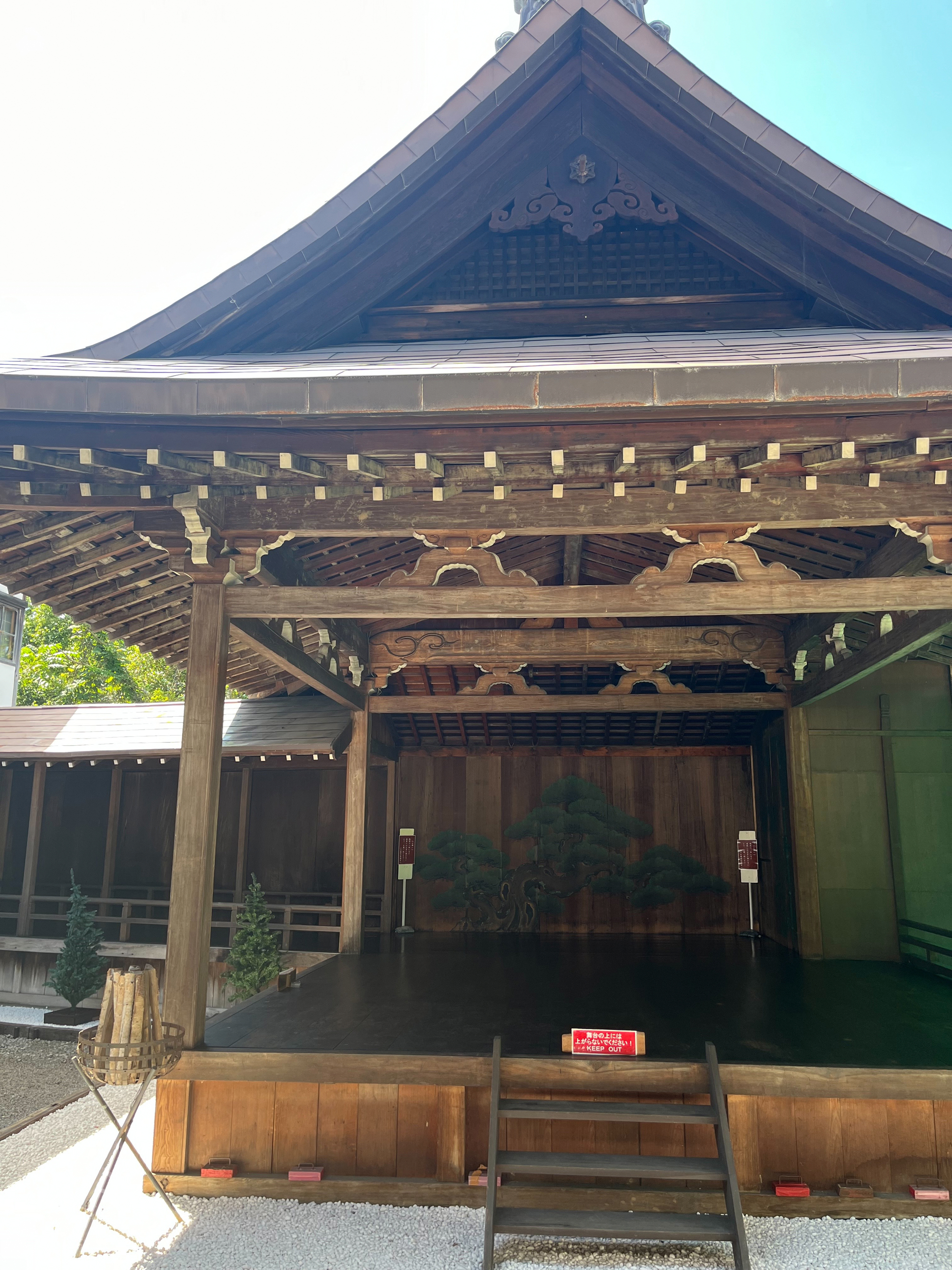 建材には佐渡産の神代杉、九州産の檜、北海道産の松など、全国から選りすぐりの木材が使われました。そして、京都から狩野派第十七代・狩野秉信氏を呼び寄せ、2カ月かけて舞台の鏡板に松と竹、揚幕板戸に唐獅子の絵を描かせました。80年以上を経た今もその美しさを保っています。舞台開きは1926年1月26日、高松宮妃や徳川家達氏らの賓客を迎え、芸術院会員・野口謙資氏らによる幽玄能が披露されました。