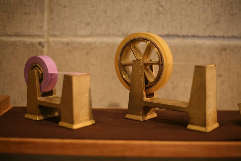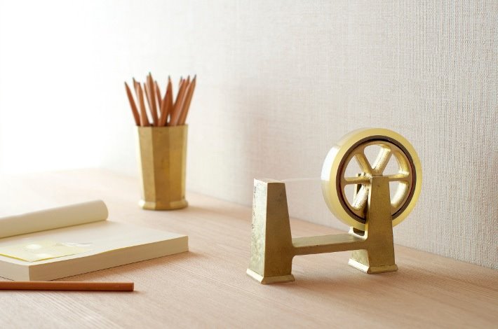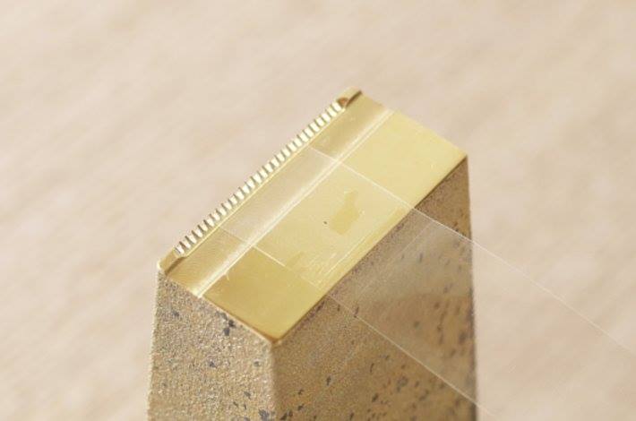 FUTAGAMIのテープカッターは、二上にて真鍮を手で削りだして刃が作られています。