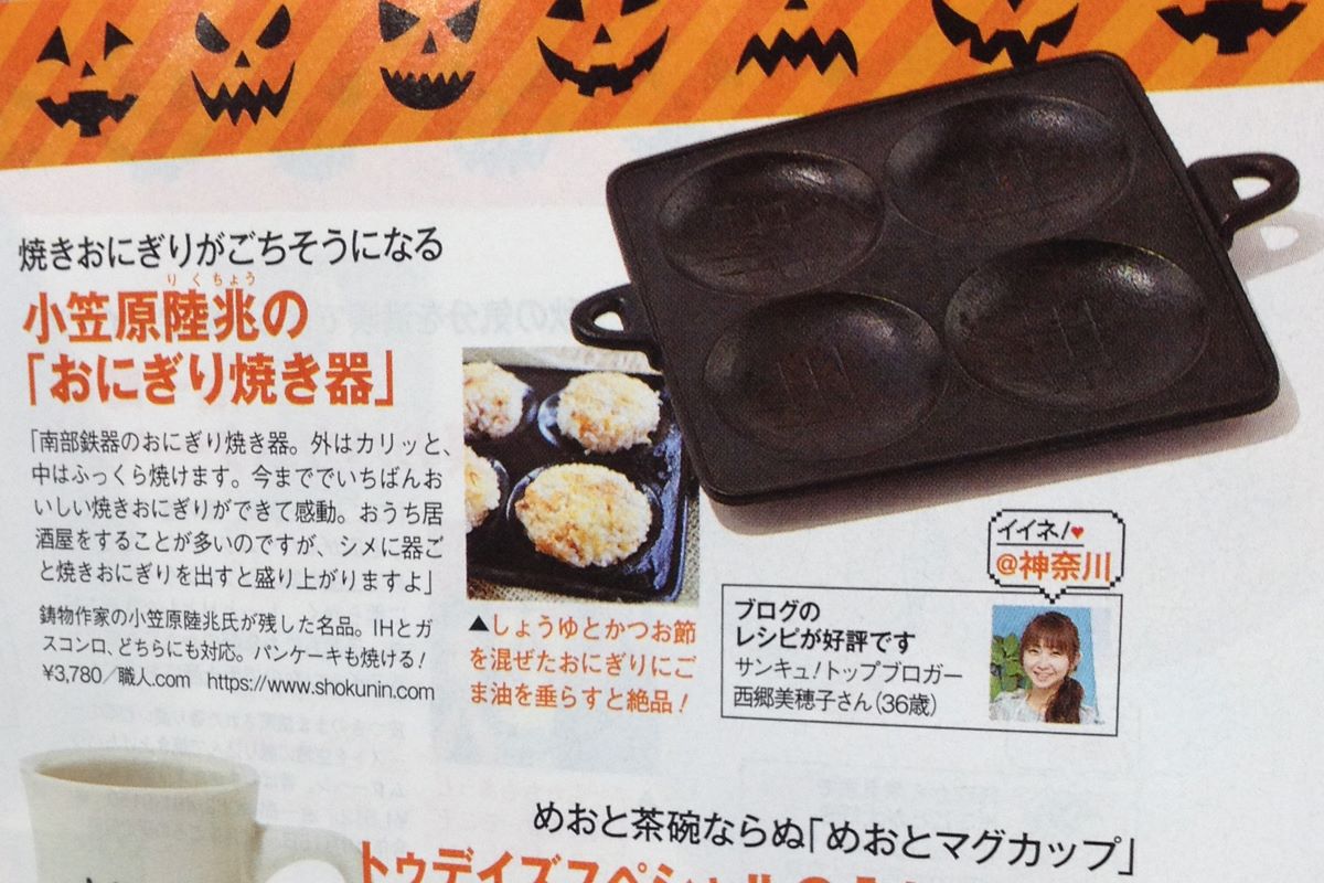 2017年09月03日 現在発売中のベネッセコーポレーションの20~40代の主婦における売上部数ナンバーワン生活情報誌「サンキュ!」に小笠原陸兆のおにぎり焼き器を掲載していただきました。 現在発売中のベネッセコーポレーションの20~40代の主婦における売上部数ナンバーワン生活情報誌 「サンキュ!」に小笠原陸兆のおにぎり焼き器を掲載していただきました。 おかげさまで在庫切れとなりましたので、9月中旬頃の発送となります。 ぜひご予約くださいませ。 https://www.shokunin.com/jp/rikucho/onigiri.html