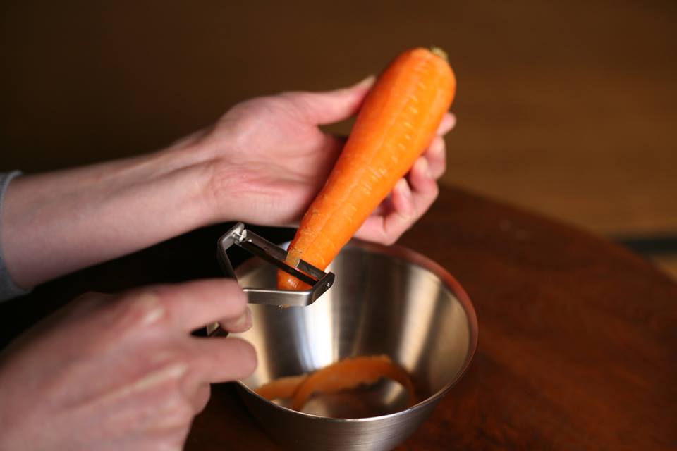 千切りピーラーは、切れ味良く少し太めに千切りできるため、きんぴらやサラダ、なますなどをお作りいただく際に、ぴったりの太さに切ることができます。ピーラーと千切りピーラーのフレームは同じなので、替え刃を切り替えることも可能です。