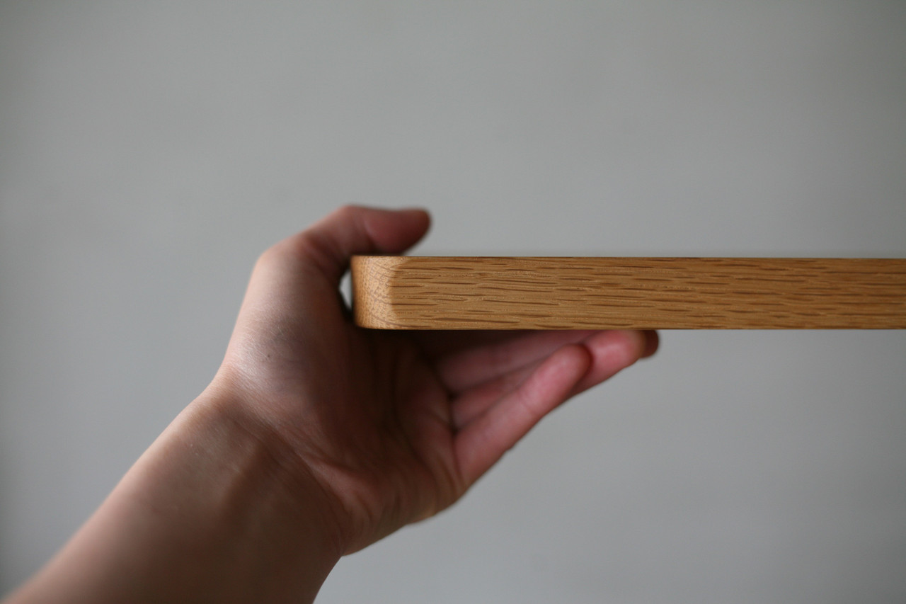 シンプルな形ですが、掴みやすいように長辺の側面が少し丸く削られています。口に入れても安全なクルミ油仕上げです。