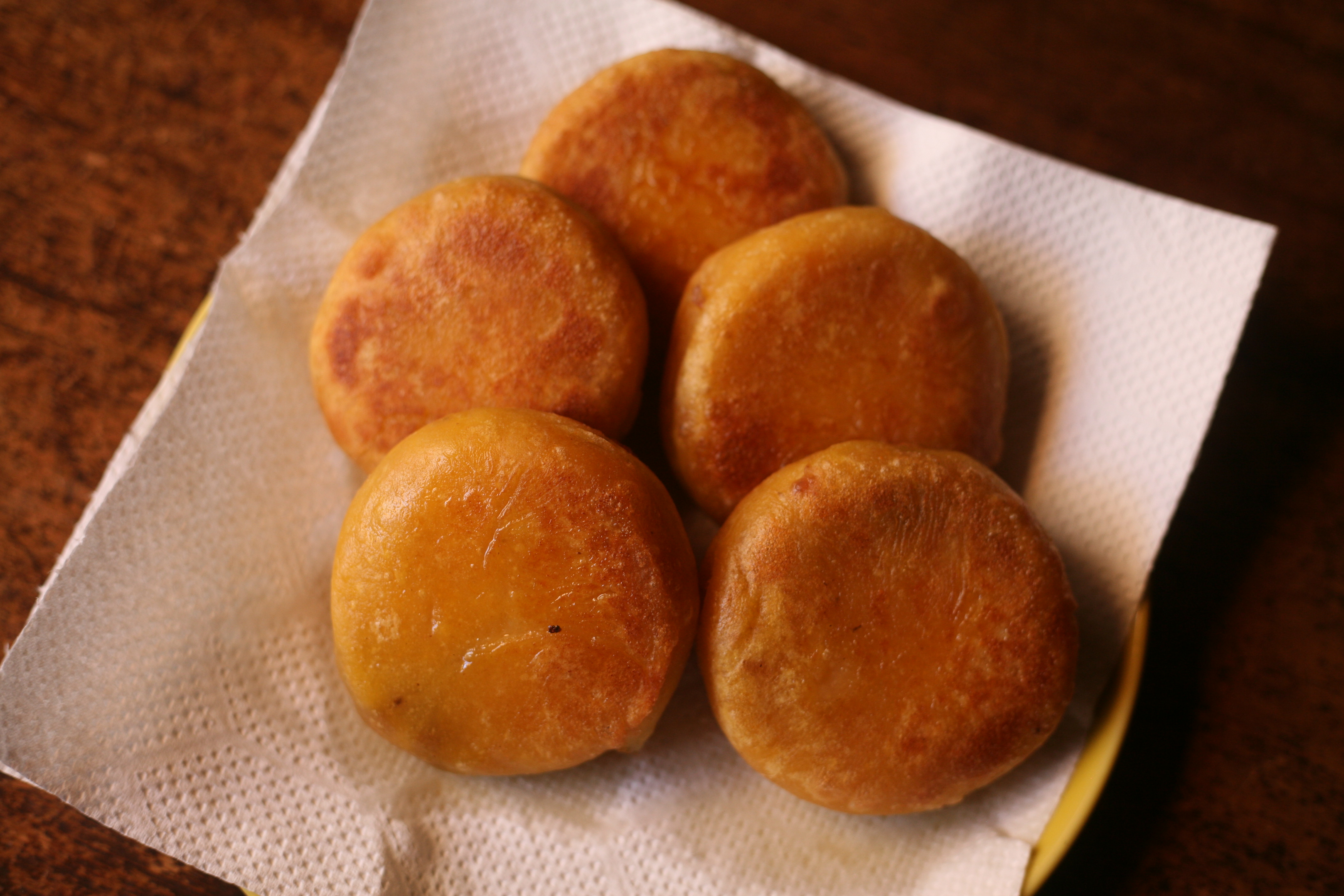 西安の秋定番のこのお菓子は、黄桂柿子餅、水晶柿子餅ともいいます。揚げたてのおいしさが何よりすばらしく、特に柿の風味が香ばしくてたまりません。