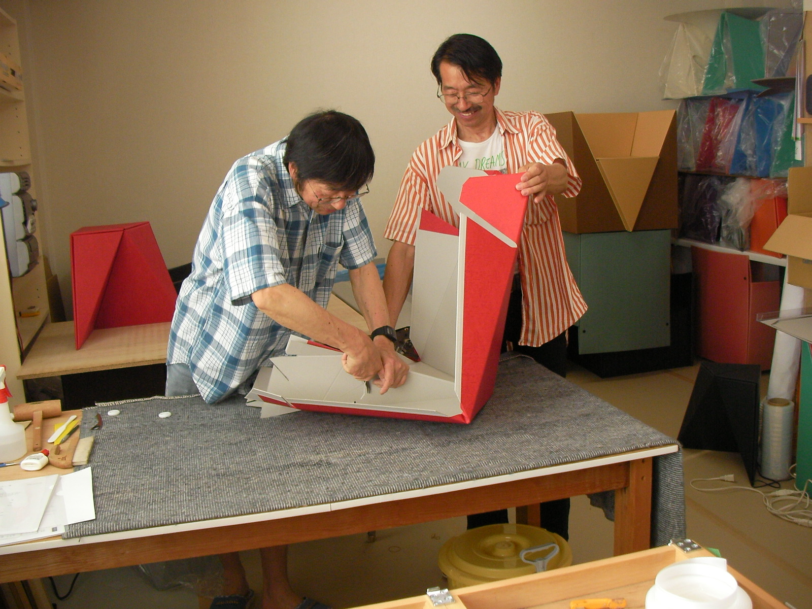 1983年、最初に作られたオリガミスツールは、四半世紀を経て2009年7月一般販売を開始。空間デザインを専門とする会社様から定期的にご注文を承っております。一枚の紙を折り紙のように折ることによって形作られる、端正なデザインのスツールです。海外からも頻繁にご注文を頂いております。