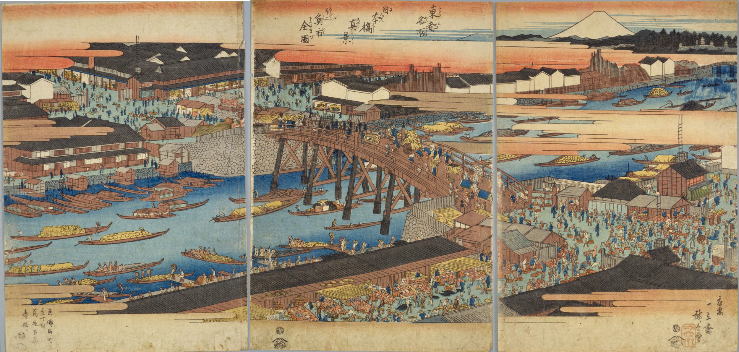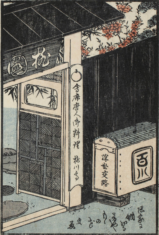 神社周辺は、商業町として発展し、神社があった通りは「浮世小路(うきよしょうじ)」と呼ばれ、「百川楼(ももかわろう)」という高級料亭もあったそうです。この百川楼、明治の初めごろまで営業を続けていた江戸屈指の料理屋で、落語「百川」の舞台にもなっています。ペリー来日の際には、百川楼の料理人が横浜まで出向き、使節団をもてなす料理を作りました。この時百川楼は500人分(アメリカ側の300人、接待する日本人分200人)の饗応料理を準備することになり、「料理はもちろん、アメリカ人が目を剥くような食器や酒器にするように」という幕府からのリクエストに見事応えたそうです。ちなみにこの料理、一人頭3両、今の金額にして約30万円。500人分で1億5000万円だそうです。しかし、この大仕事をやり遂げた百川楼は、明治維新以降こつぜんと姿を消してしまった、というちょっとミステリアスな面も残るお話です。