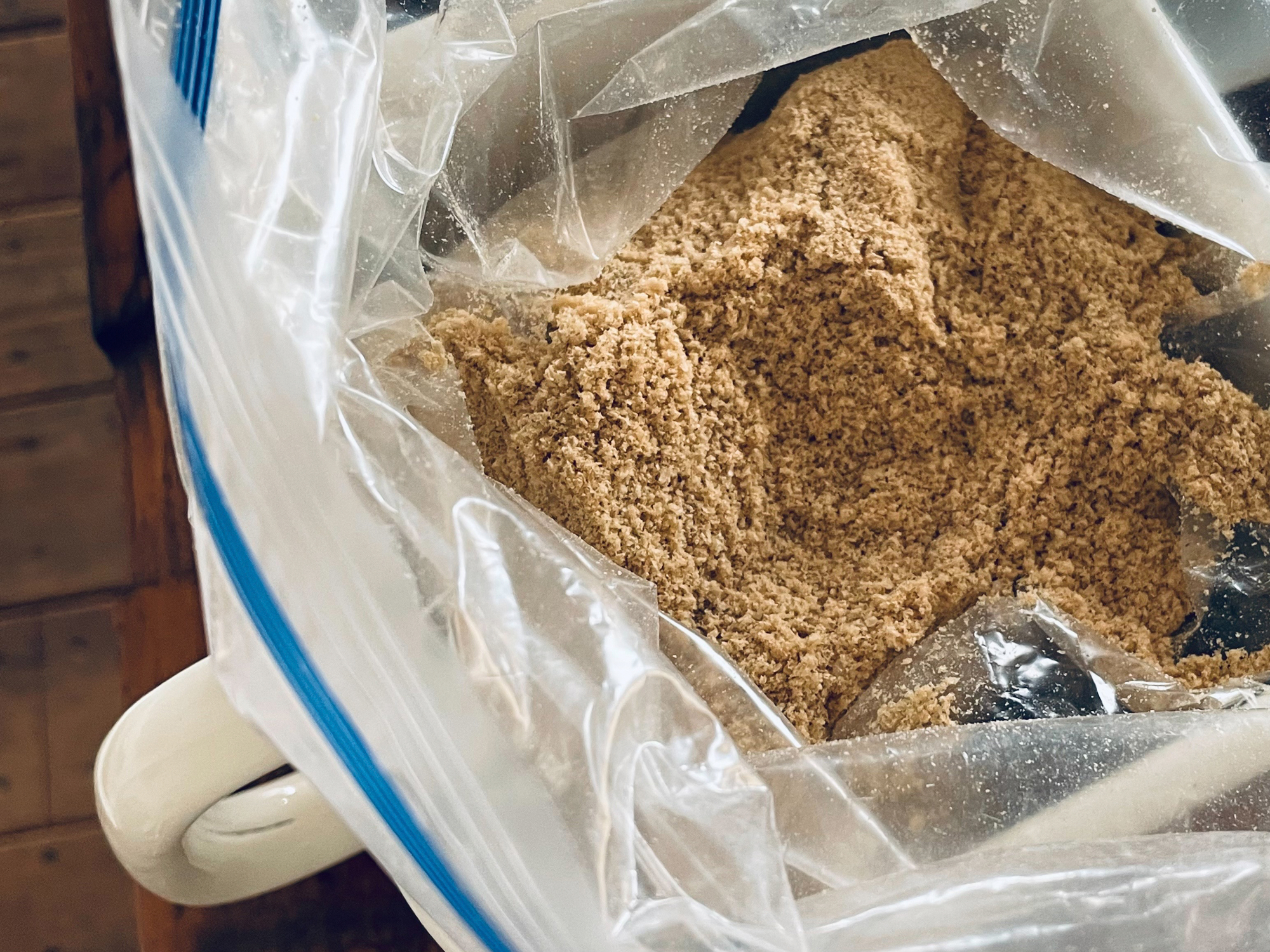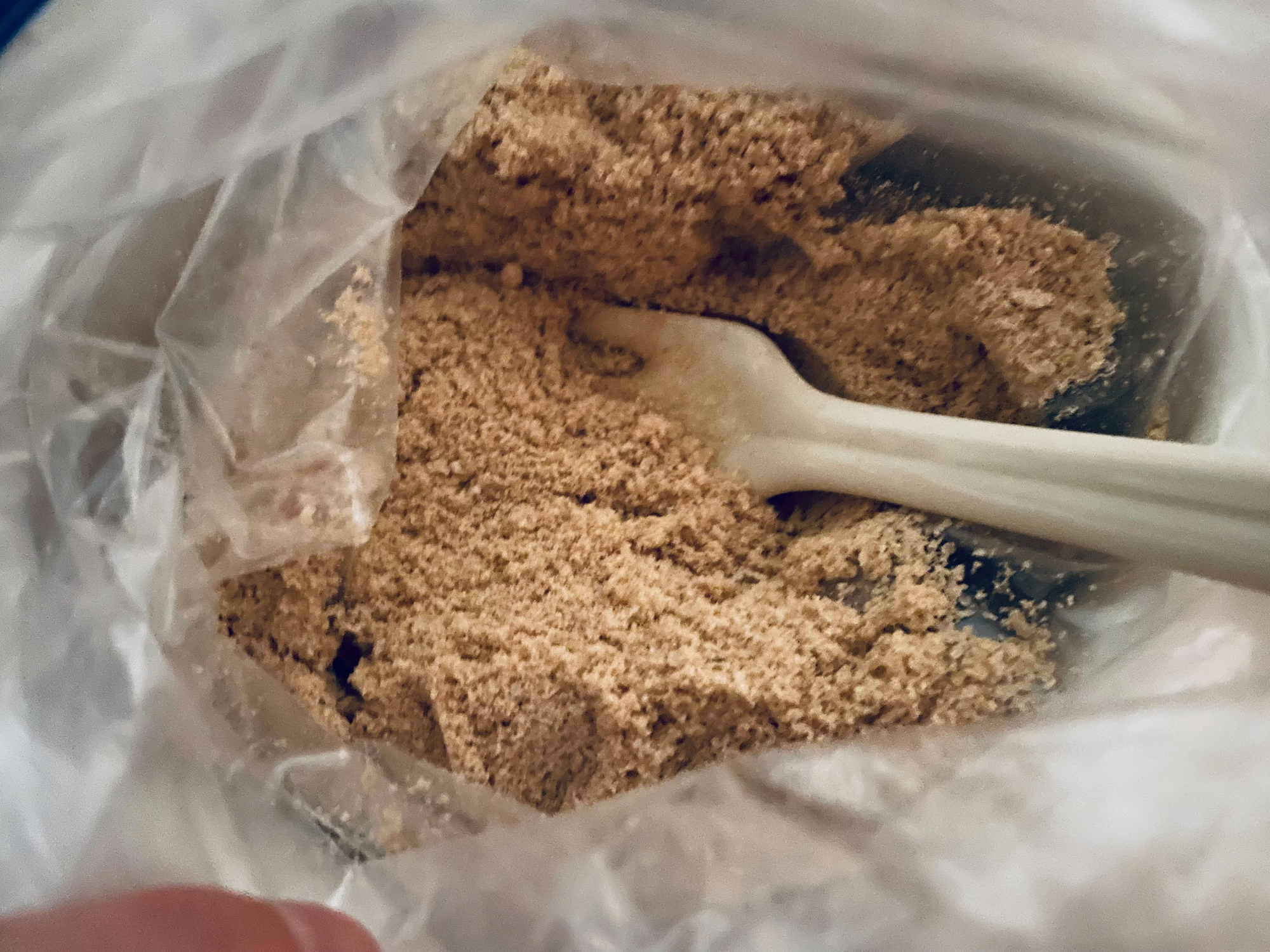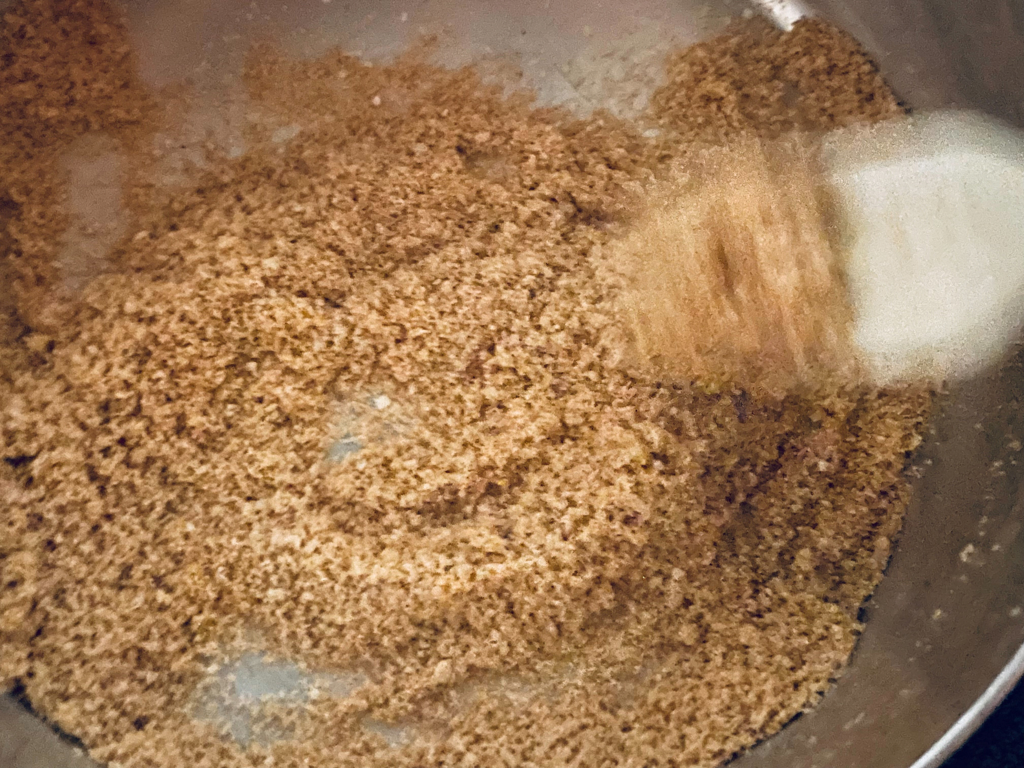 1. 米ぬかはフライパンで乾煎りし(油を引かずに直接火にかける)、少し茶色くなったら火を止める。