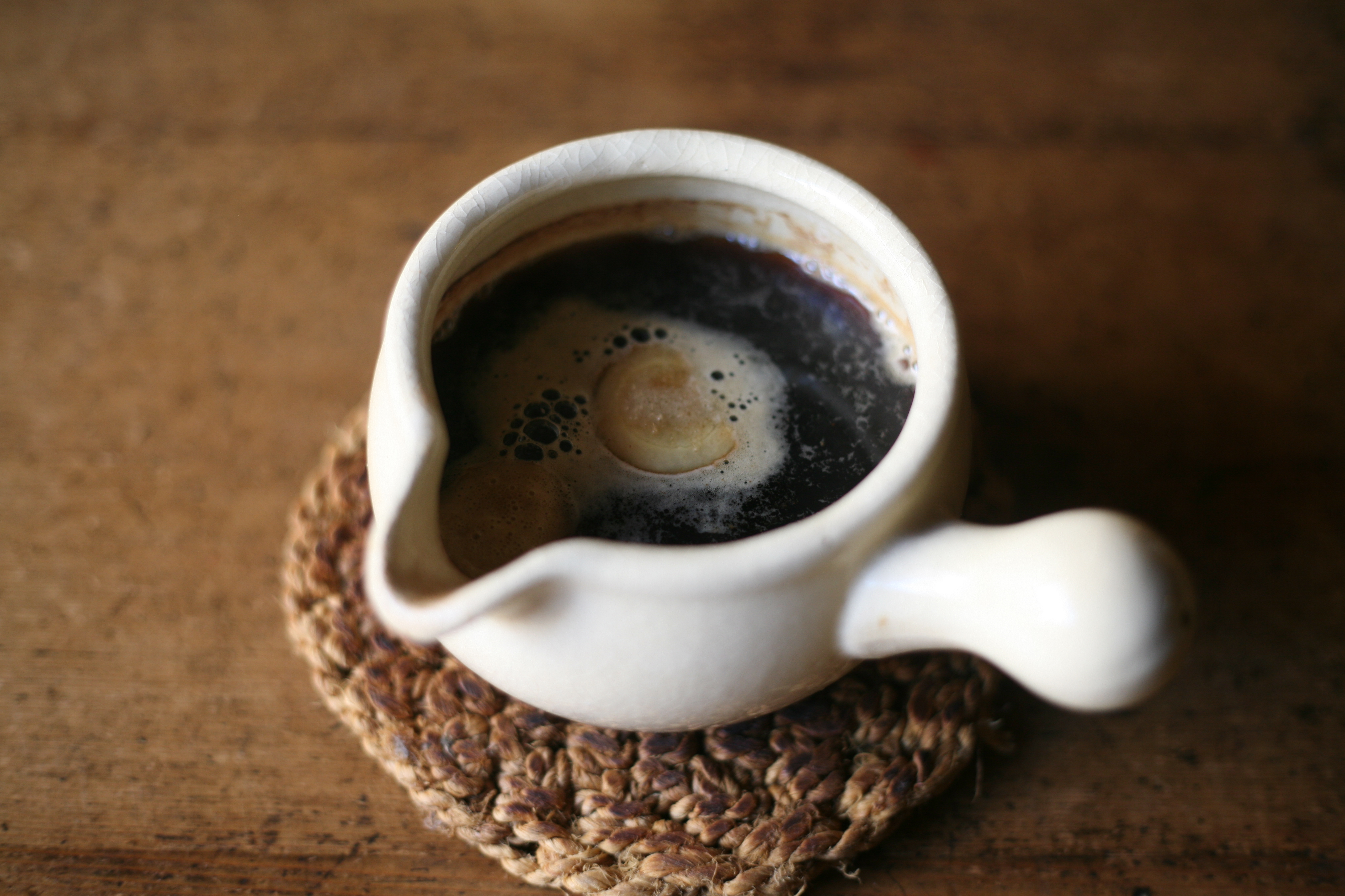 松山陶工場のあたため鍋小は、ご自宅でホットビールを作るのにおすすめです。ビールをできるだけ泡立てないようにゆっくりと鍋に注ぎ、シナモンやクローブ、生姜のスライスや砂糖を入れ、弱火で沸騰直前まで温めます。あたため鍋はゆっくりと火が入るので、ビールが温まるにつれ、ふんわりとやわらかい香りが立ち上ります。ぜひ、お好みの黒ビールなどで作ってみてください。