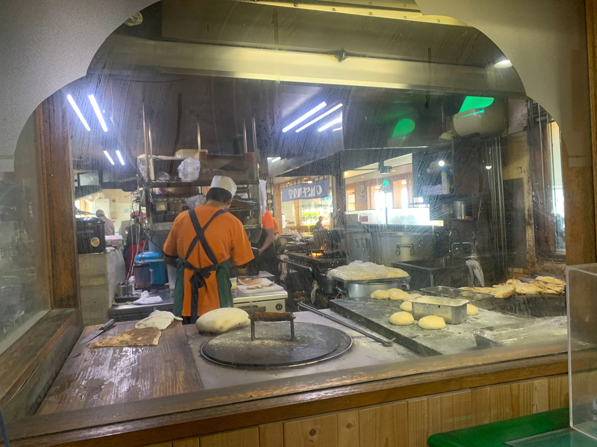 まずは札幌駅からじょうてつバスに乗り、1時間半ほどで豊平峡温泉に到着します。碁盤の眼状に広がる札幌の市街地を抜け、徐々に景色は移り変わり、いつの間にか山々に囲まれている。そんな1時間半の道のりは、なんだか少しずつ日常を離れる気持ちの準備をしていくようです。豊平峡温泉は、訪れたことのある友人が皆おすすめする温泉だったので個人的にとても楽しみでした。そして皆が口を揃えて「インドカレーね」というのです。私の中では温泉とインドカレーが結びつかず、ずっと頭にはハテナが浮かんでいたのですが、実際に豊平峡温泉の看板が掲げられた建物に入った途端、カレーのおいしそうな香りが漂ってきました。食堂の厨房はガラス張りで、中では本場の職人さんがナンを焼き、カレーを煮込んでいるのです。そうかと思えば厨房の一角には蕎麦を挽く石臼があり、本格的な十割そばまで楽しめるといいます。そしてここは温泉、なんとも不思議な世界観です。豊平峡温泉は日帰り入浴のみの施設。温泉は全国的にも数少ない100%源泉かけ流しで、冷水による温度調節や追い焚きを一切せず、地中からの源泉を直接浴槽に注いでいるそうです。大自然の中にある露天風呂から眺める雪景色が本当にすばらしく、言葉を忘れました。四季折々の絶景風呂を求めて、そしてレパートリー豊富なインドカレーを求めて、何度でも通ってしまいそうです。