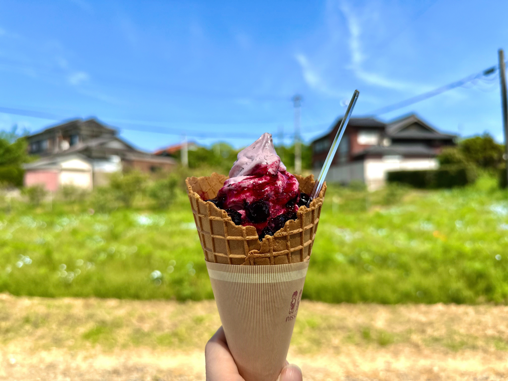 暖かい季節になると、ふと思い出す若松のソフトクリームをご紹介します。若松ショールームから15kmほどの若松区有毛にある田中農園は、代々、若松潮風キャベツ、若松クイーン(小玉スイカ)、ブルーベリーと、さまざまな農産物を栽培されています。そんな農家さんが毎年4月~11月の期間限定ではありますが、ソフトクリームやスムージーなどを販売するお店をオープンされるという耳寄りなお話です。
