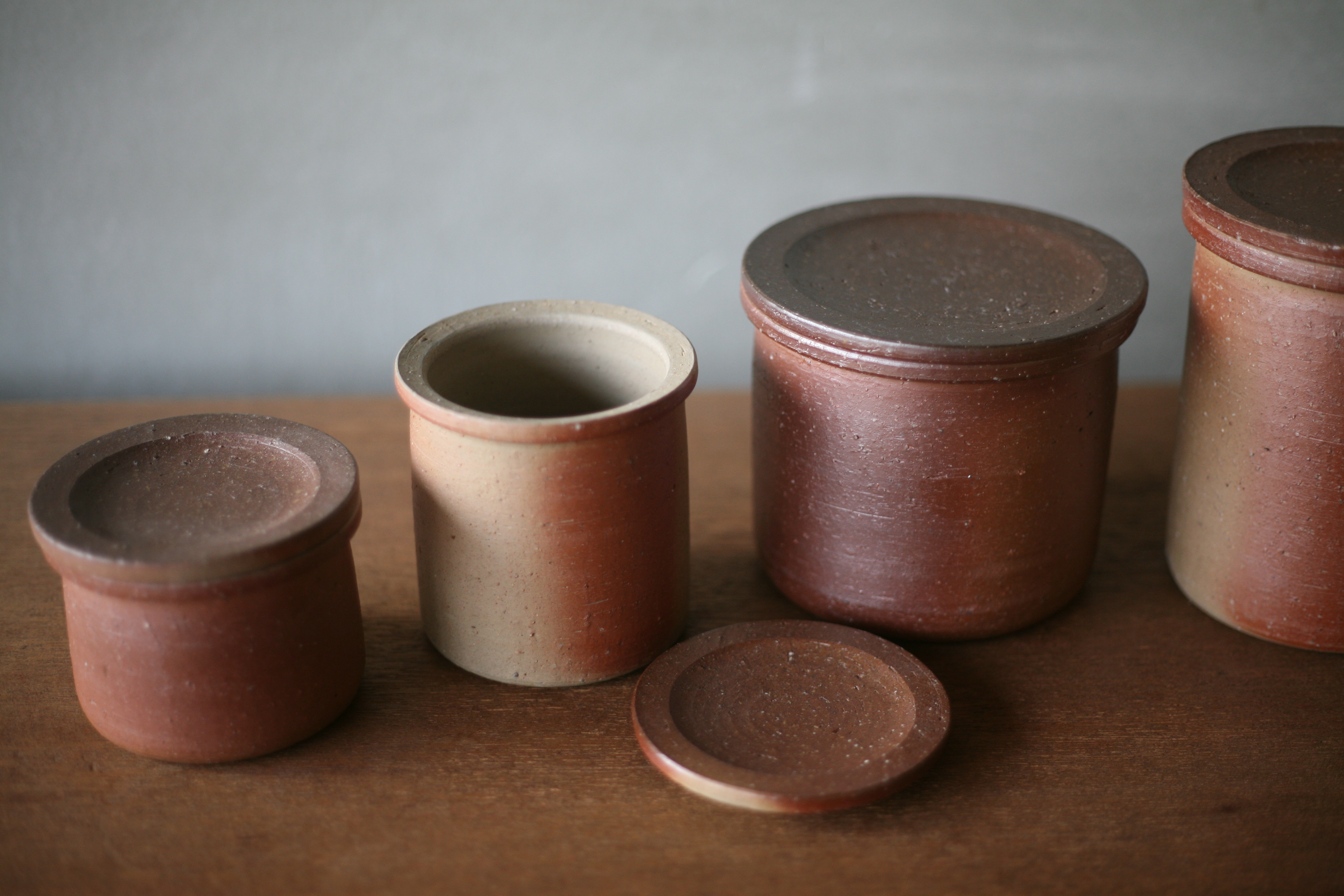 釉薬を使わず、地元で採れる陶土からの土作りを経て、ろくろで成形後、10トンもの赤松の割り木で10昼夜半窯焚きをして作られます。