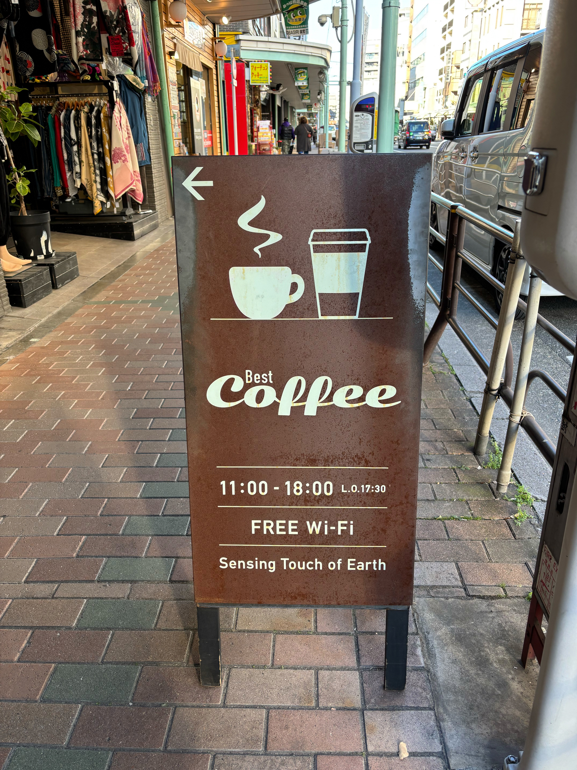 こうしてお店を思うままに夢中で巡っていると、急に電池が切れたようになるのも私事ながら定番です。ちょっとひと休みに寄るのは、道具店の並びにある「Sensing Touch of Earth」。空間デザインのプロフェッショナルが手がけた特別な空間の広がるカフェで、こだわりのコーヒーメニューも並びます。デカフェを飲み歩いてまいりましたが、こちらのお店でいただくパンチのある深い味わいのデカフェは格別に思います。デカフェでもしっかり重めのコーヒーを味わいたい!という方にはぜひおすすめです。たいてい満席ですが立地柄回転もよく、無事にひと息つくことができました。落とされた照明と音楽の心地よい、とても落ち着く空間です。