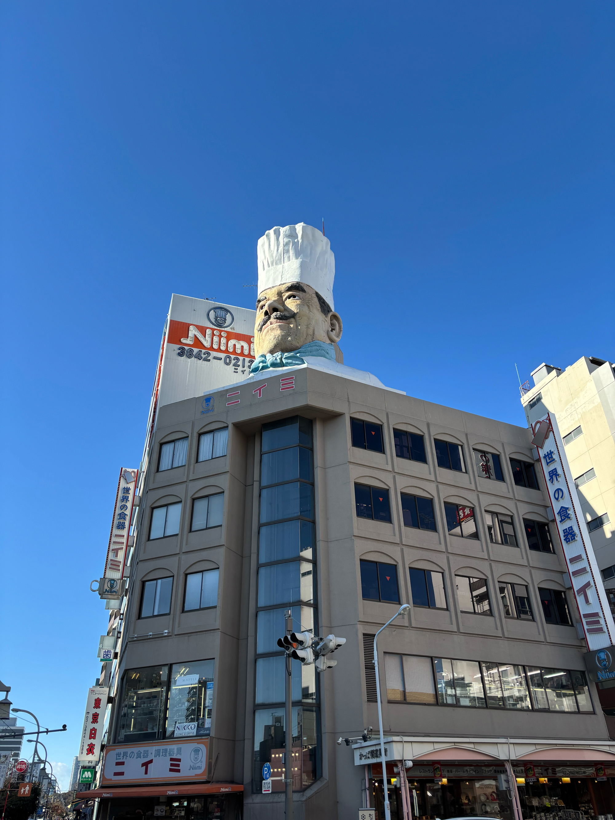浅草寺(せんそうじ)の「雷門」でも有名な浅草、その西側を南北にわたり800メートルほど伸びる大きな商店街が“かっぱ橋道具街”です。飲食店に関わる道具を扱うお店が、ぎっしりと軒を連ねています。