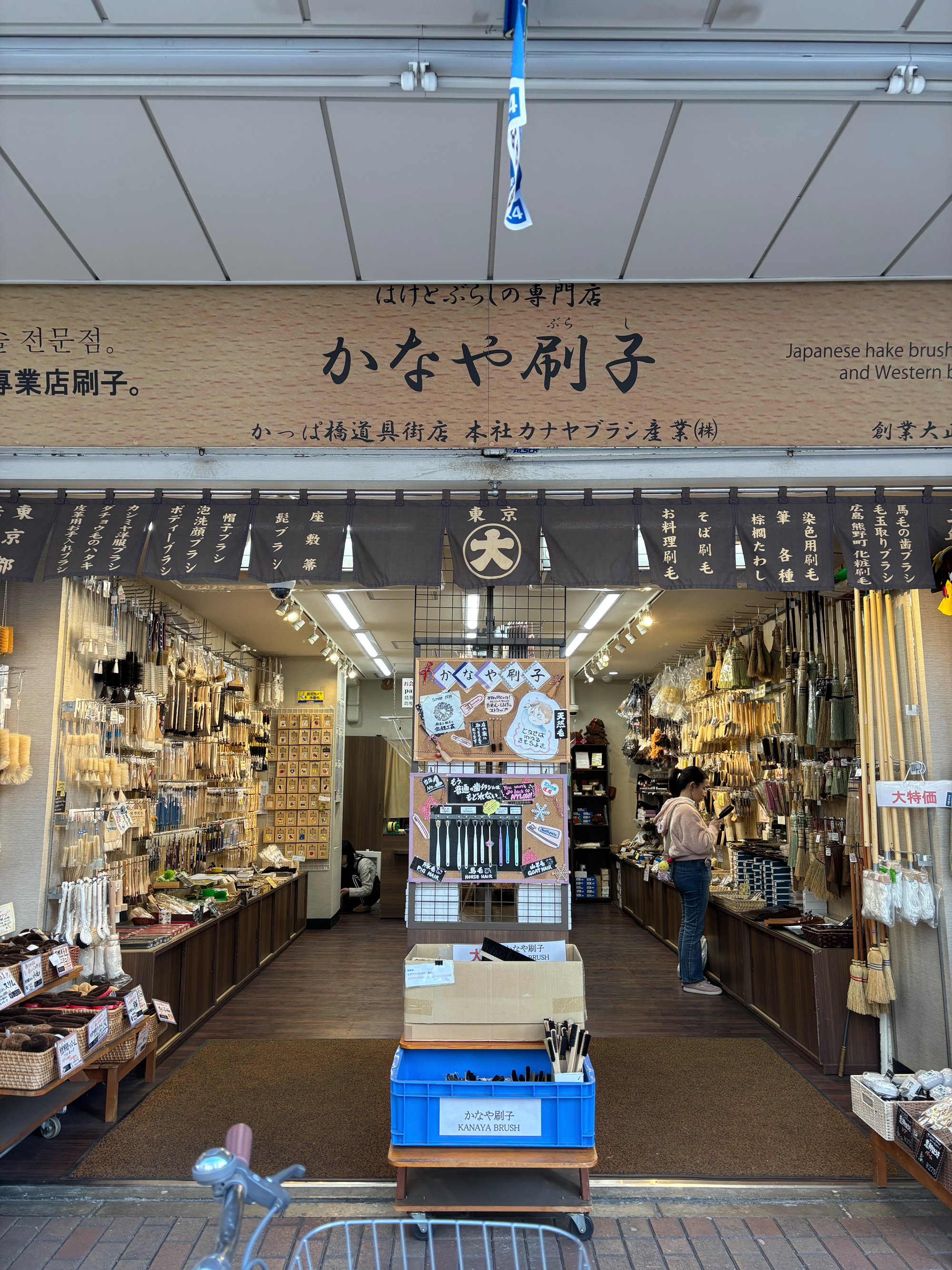 街を歩き進めるとスカイツリーがばっちりと見える路地があったり、当店で取り扱いのある“かなや刷子”さんの店舗も並びます。今回は台所道具の交換部品を探しに行きました。お店の方たちはみなさん親切で、自店にないものも「もしかしたらこの並びの◯◯さんのところにあるかもしれないよ」と心当たりを教えてくださいます。この日は3軒目に見つかりました。いつものお店では取り寄せとなるところを、その場で手に入れることができ、大変助かりました。