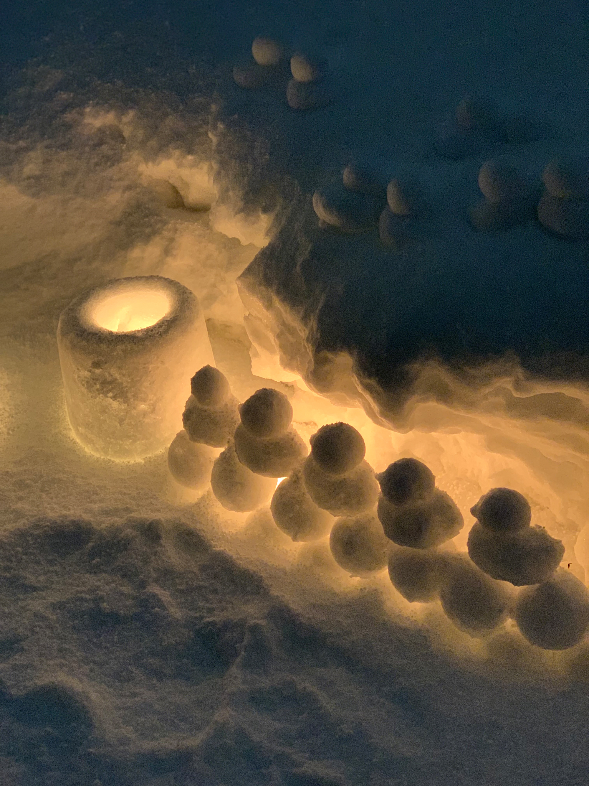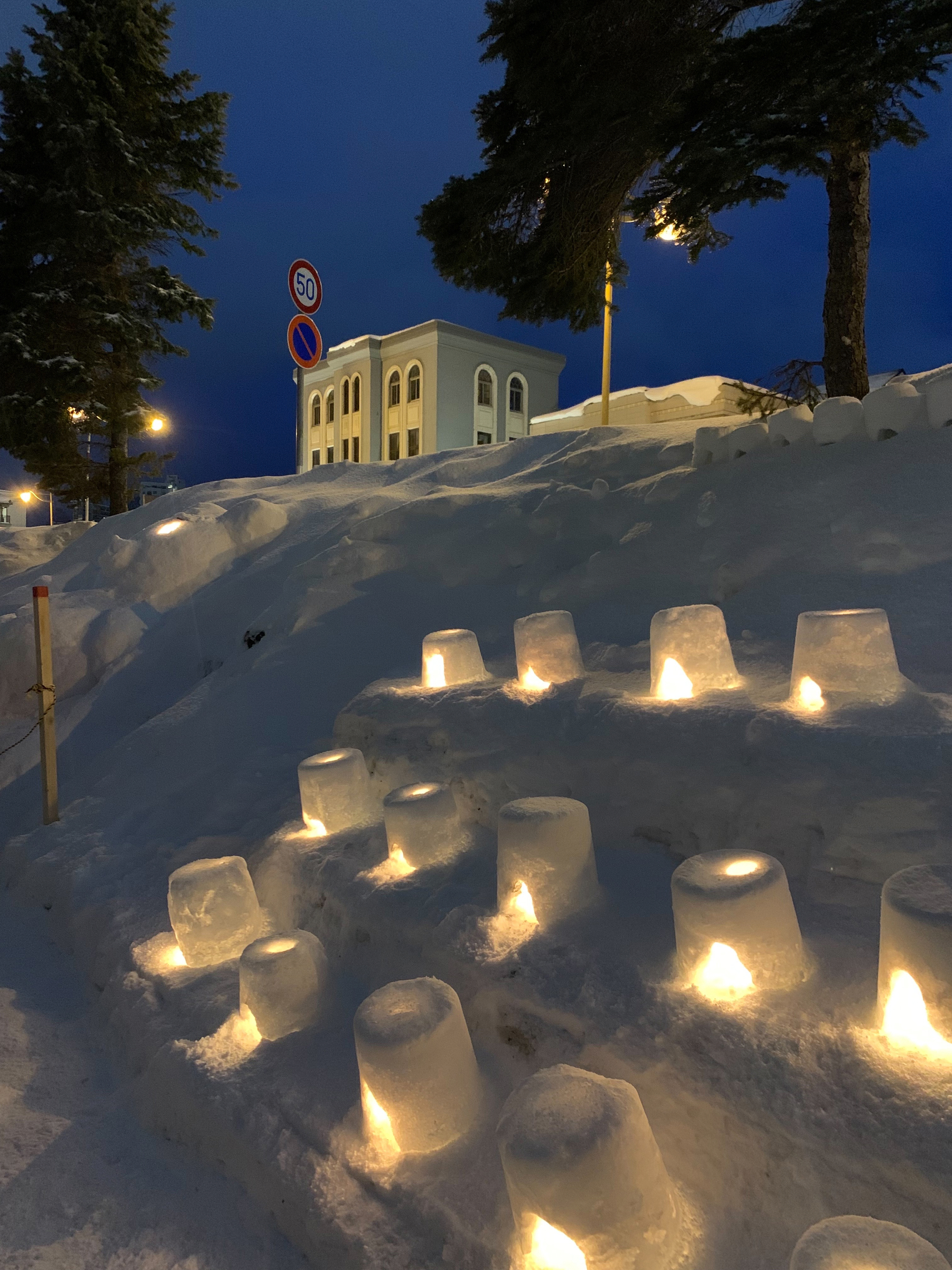 厳寒の2月の夜、ヒリヒリとした寒さを肌に感じながら歩く道を、優しくあたたかいスノーキャンドルの光が照らしてくれます。