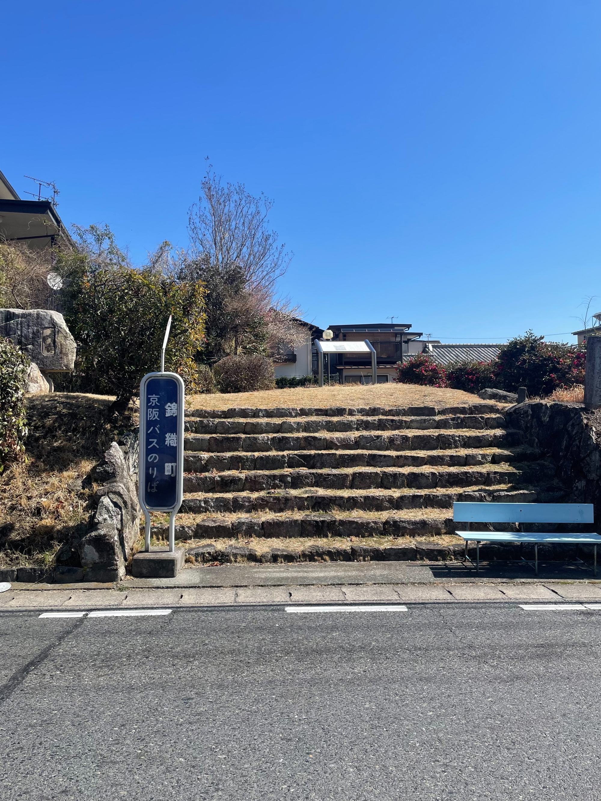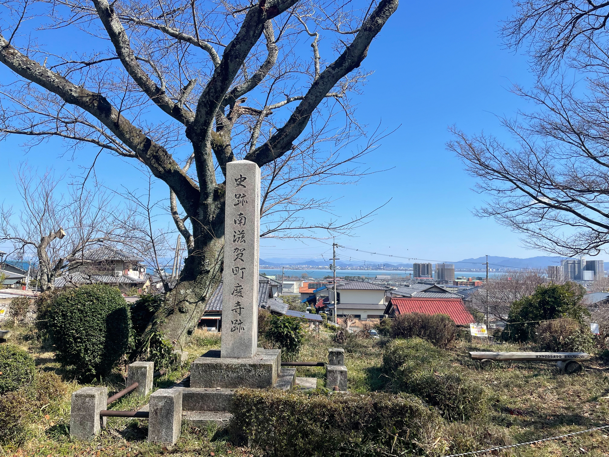 京都からバイクで山中越を抜けると20分くらいで琵琶湖が眼下に広がります。近江神宮の前を過ぎて右に折れ、すぐの橋を渡ると錦織という住宅街に出ます。目立たないのでうっかりしていると見落としてしまいそうですが、この家々の間に、飛鳥時代の遺構、大津宮の跡といわれる錦織遺跡が点在しています。
