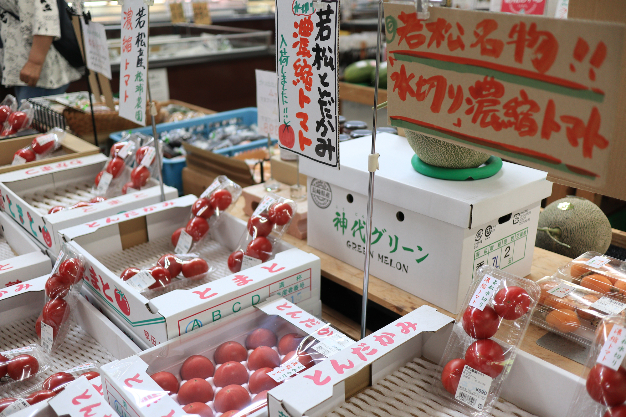 北九州市若松区は、潮風の吹く広大な農地での野菜や果物の生産が行われており、また日本屈指の漁場である玄界灘を含む筑前海に面していることもあり、漁業も大変盛んです。地元の農産物、海産物などが並ぶ直売所は若松区内にいくつかあり、季節限定の特産品を求めるお客さんで常ににぎわっています。