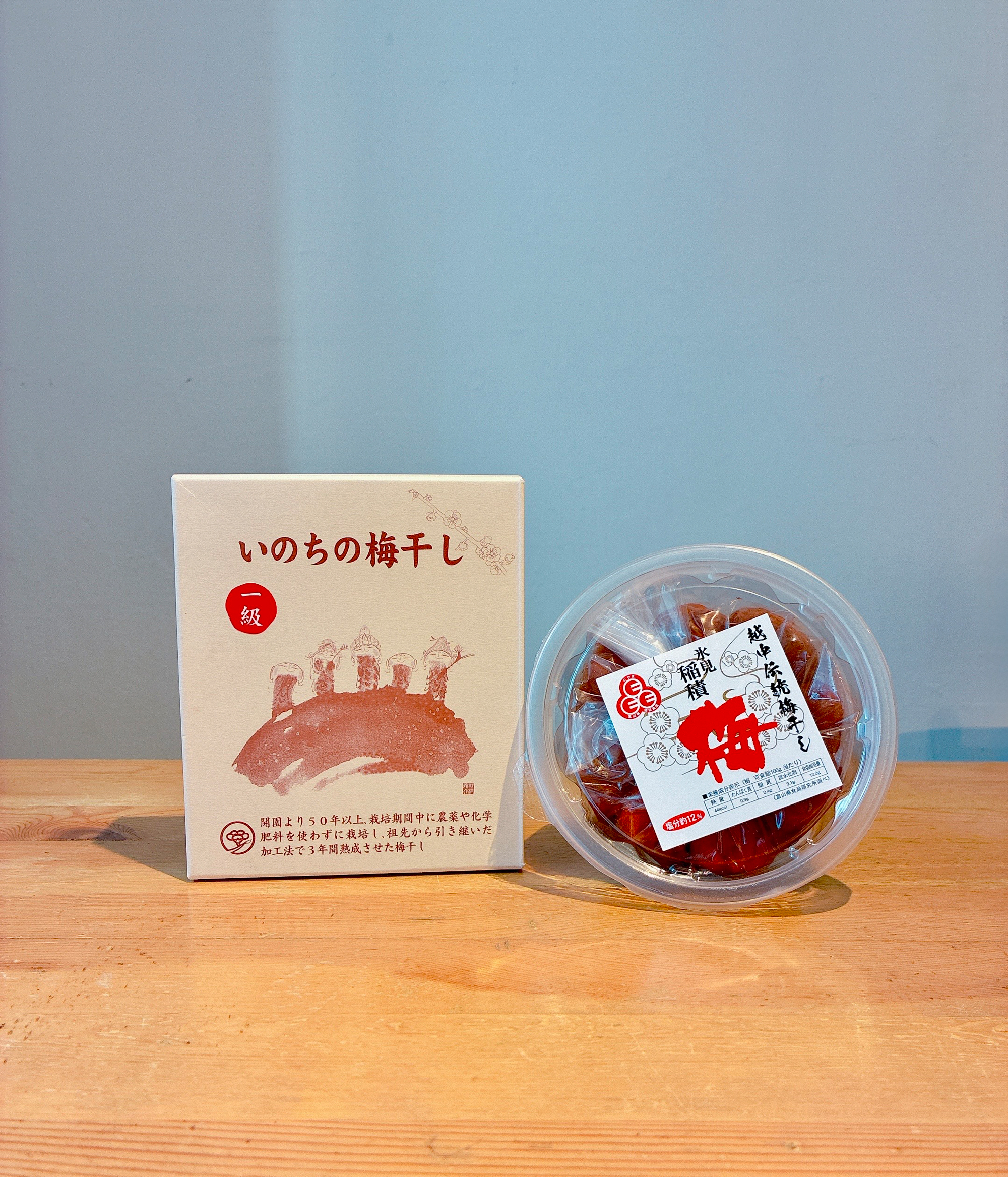 「梅干し専門店うめ八」では、全国から選りすぐりの梅干しが取り揃えられており、石川県の天日塩だけで漬けられた梅干しもあります。この日は焼き梅に良いと紹介していただいた、塩分控えめの富山の梅干しと、農薬や化学肥料を一切使わずに育てた、宮崎の梅干しを購入しました。