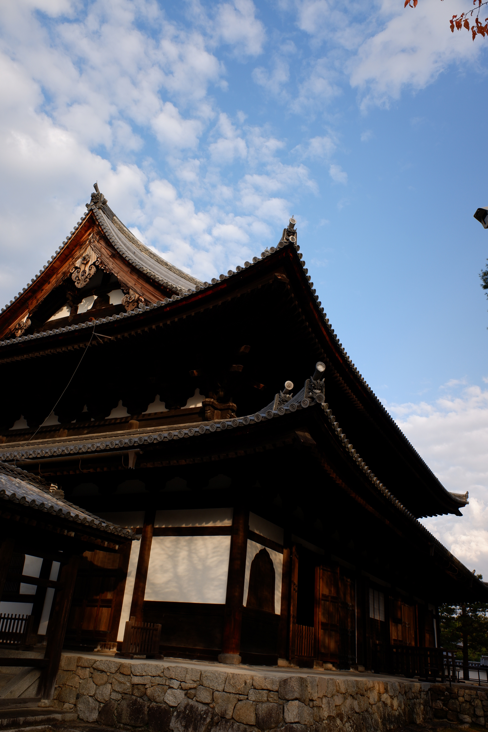 今出川ショールームから徒歩で東へ15分、京都御苑の北側に、臨済宗相国寺派の大本山「相国寺」があります。相国寺は、14世紀末、室町幕府三代将軍の足利義満により創建されました。その境内は、法堂、方丈、庫裡、開山堂、勅使門、総門、浴室、鐘楼、蔵経塔、弁天社などから成りますが、創建後、たびたび火災に遭っており、創建当時のものは残っていません。とはいえ、1605年に豊臣秀頼の寄進により再建された法堂は、日本最古の法堂建築として今に伝わり、また、桃山時代にできた禅宗様建築としては、最大最優秀作といわれています。法堂は松林に囲まれ、その威風堂々たる伽藍建築は重要文化財に指定されています。12月初頭に訪れてみると、まだ境内の紅葉が法堂の荘厳さに色を添えている様を眺めることができました。