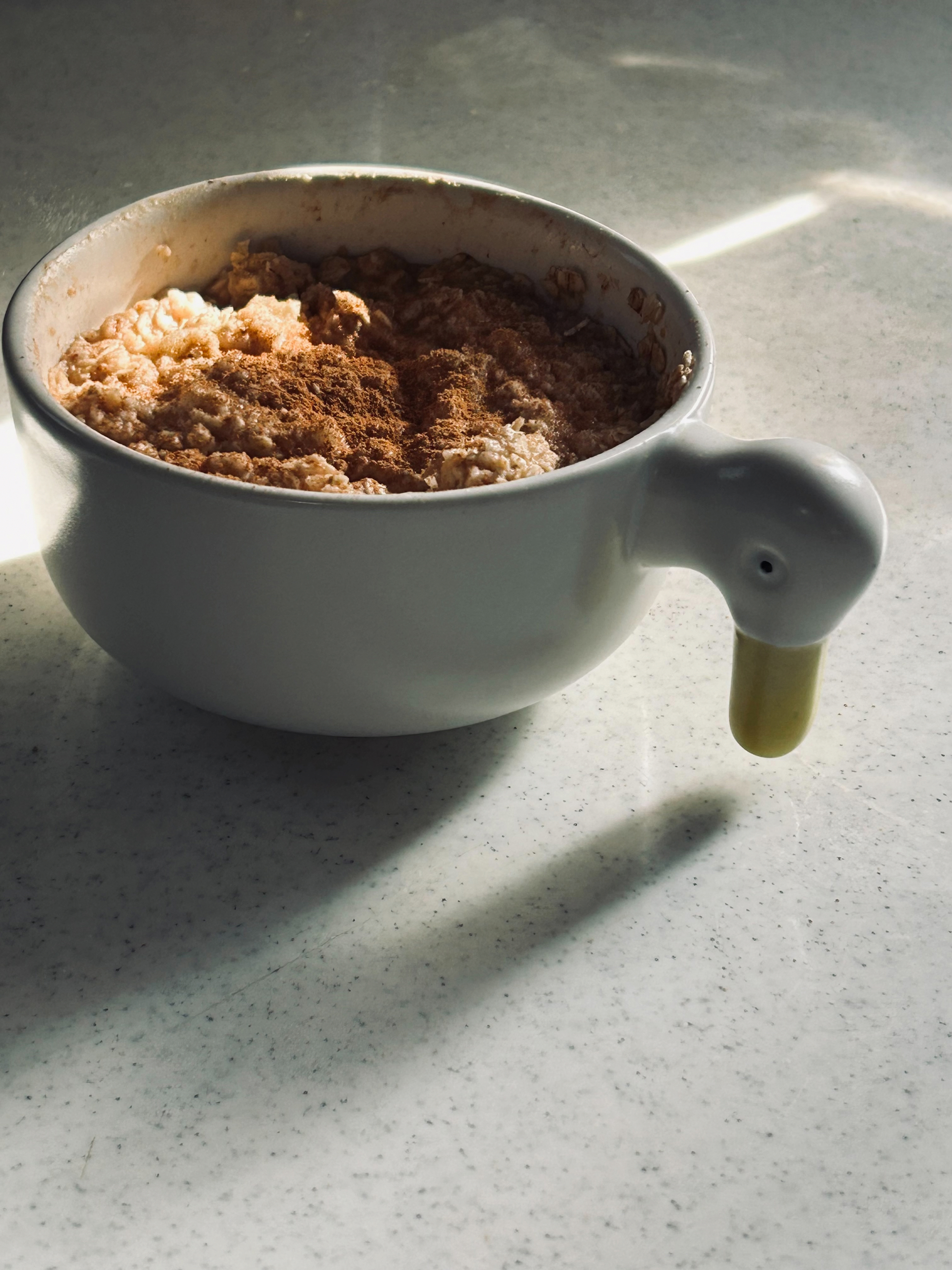 食べ始めて1週間ぐらいになりますが、とても快腸。寒い朝にもほっこりします。息子も気に入ったようで、息子用には純ココアを混ぜ込んだり、アレンジもしています。セラミックジャパンのアヒルボールSが、とても良いサイズ。