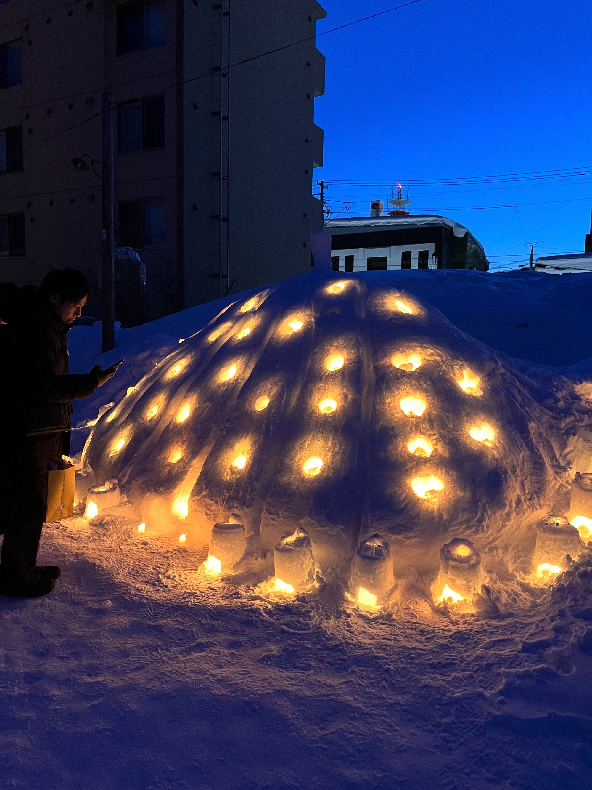冬の北海道を代表するイベント「小樽雪あかりの路」が開催されている小樽では、夜を迎え、雪で作られた灯籠に明かりが灯されました。