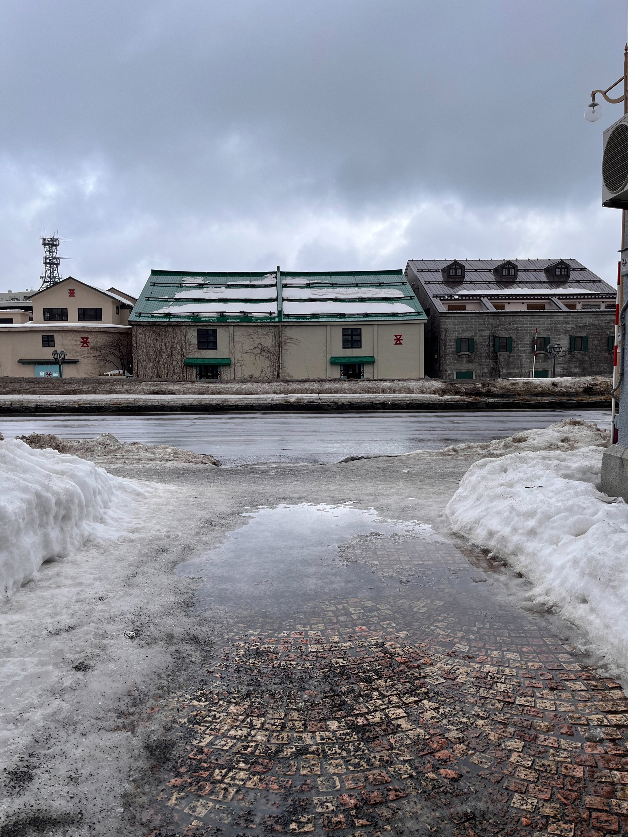 本日の小樽ショールーム。小雨が降る中ではありますが、ようやく雪が溶け、道路が顔を出してきました。