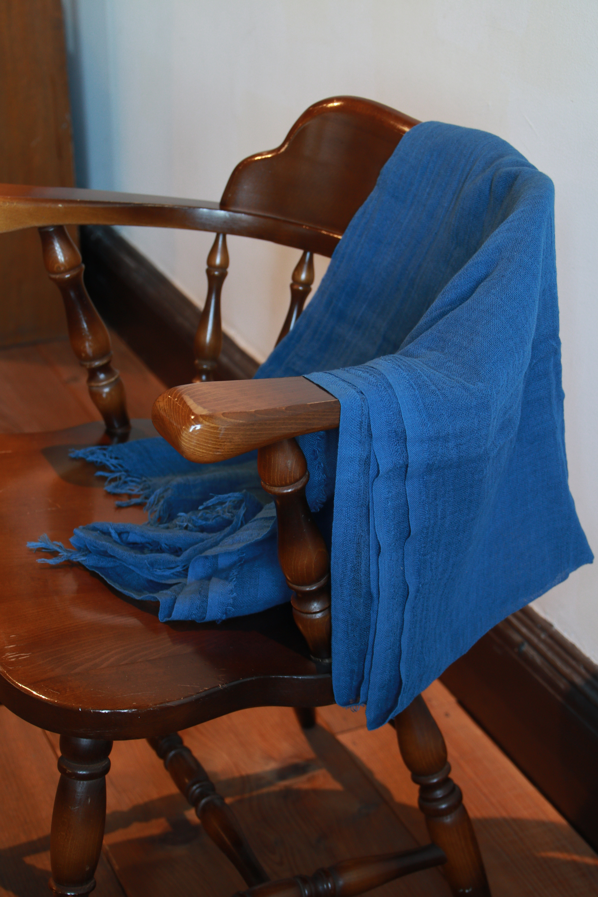今週から、INDIGO CLASSICのストールを展示しています。藍染めの深みある色合いとしなやかな風合いがとても上品で、日中は暖かく、夜は少し肌寒いこの季節のコーディネートを軽やかに整えてくれそうです。