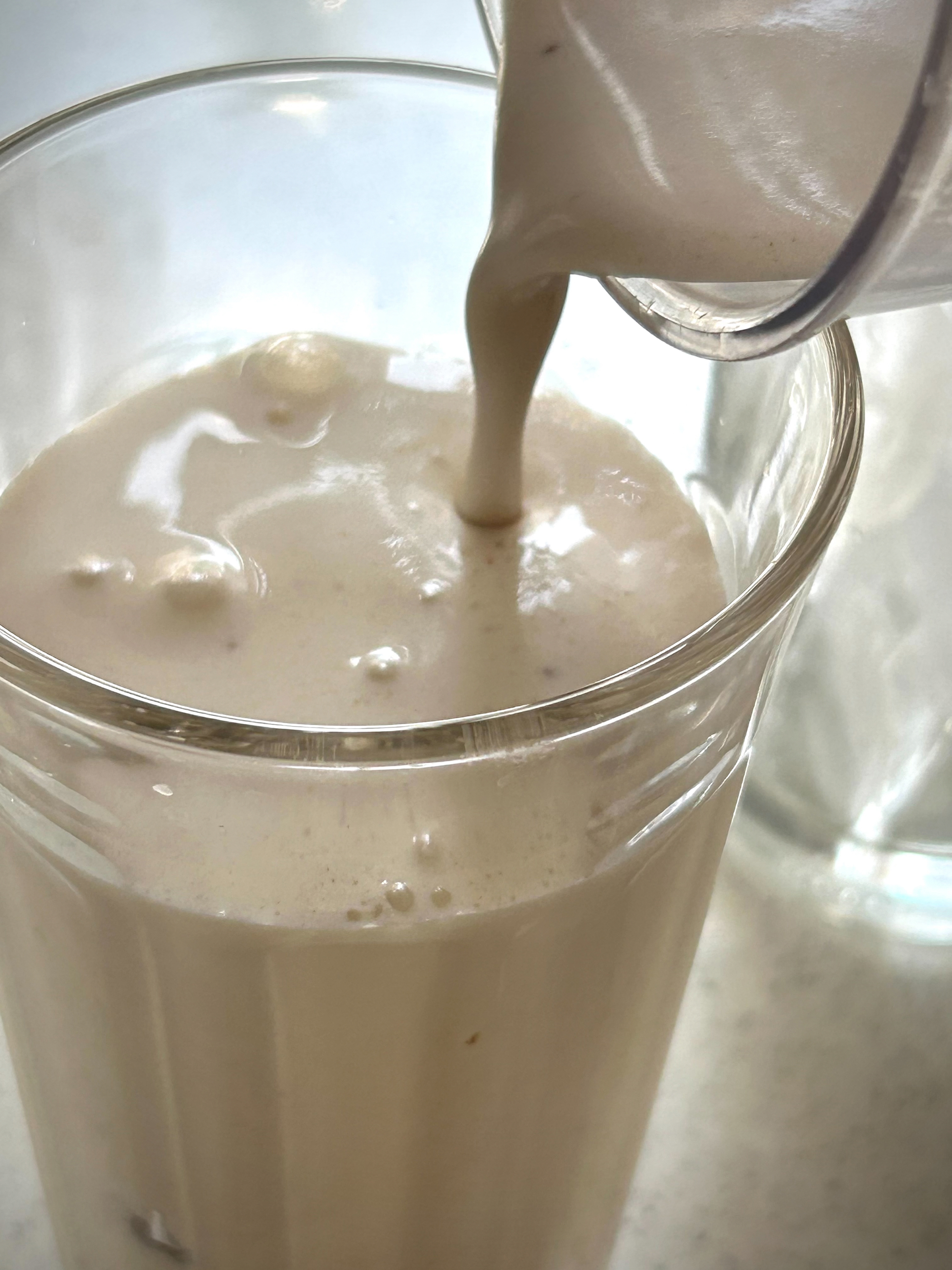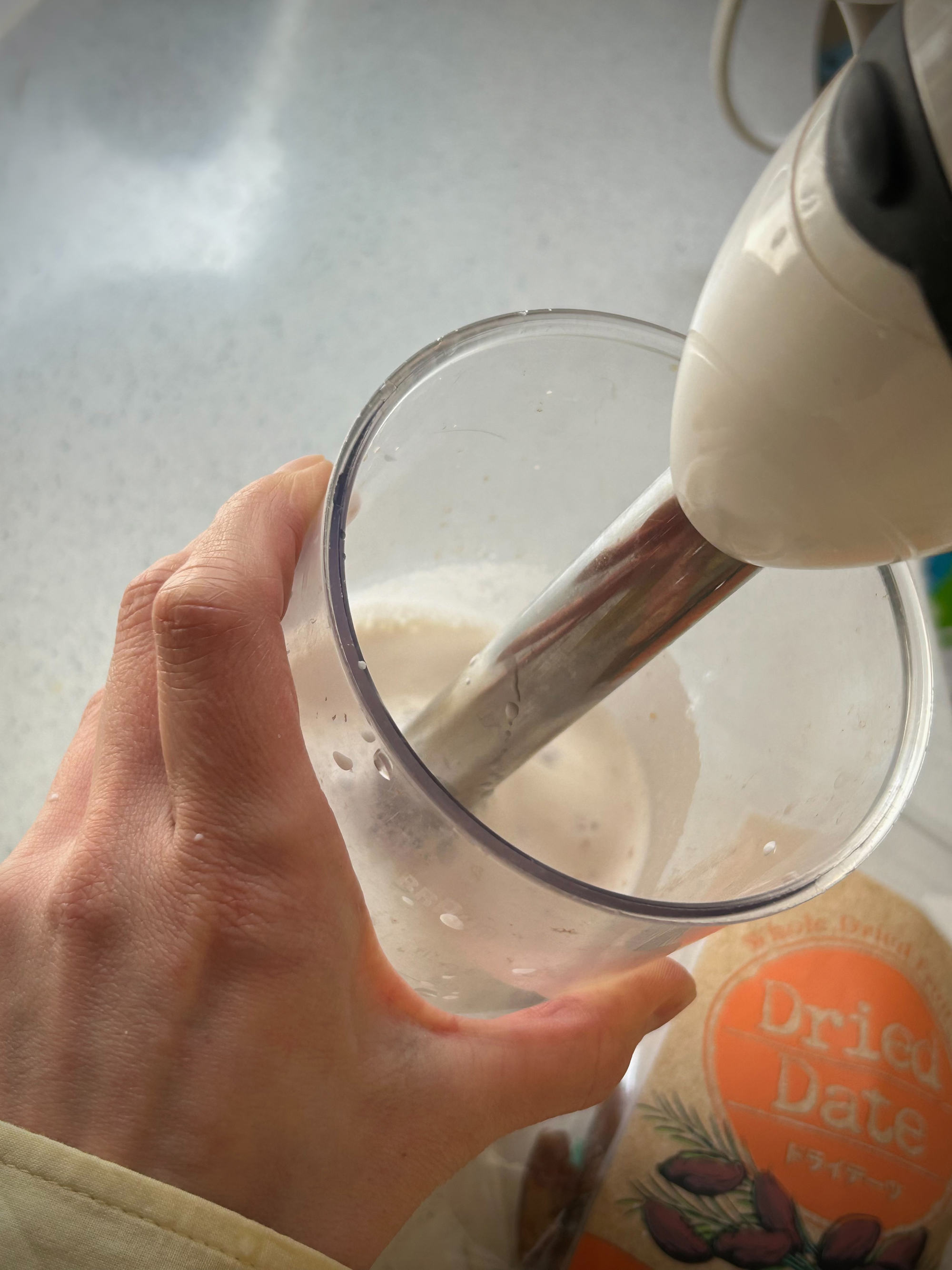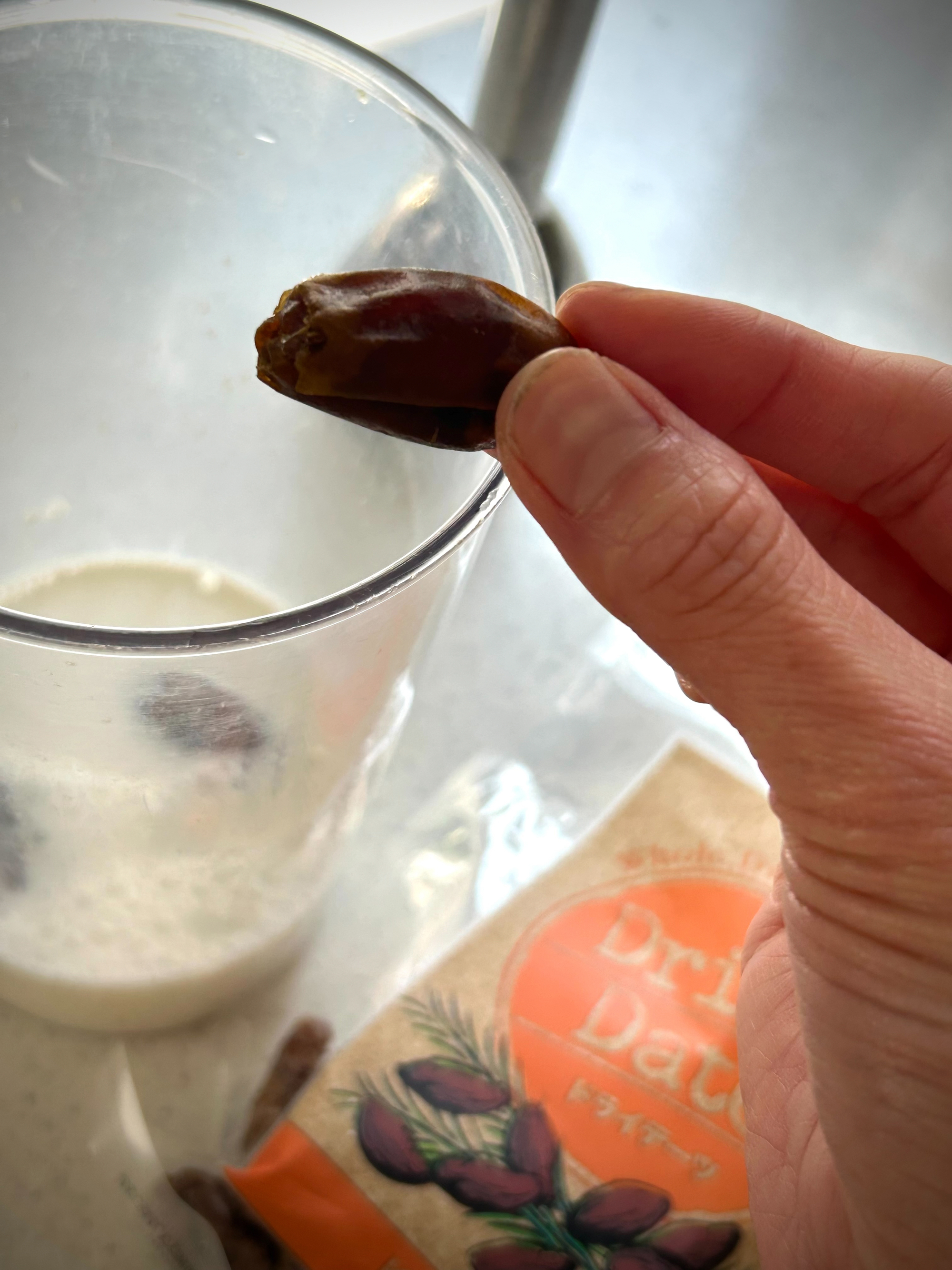 昨年開催された2025大阪・関西万博で大人気だったヨルダンパビリオンの「デーツシェイク」。ブレンダーでガーっとバナナミルクを作っている時に、ふと「あ、私はデーツシェイクを飲んでみたかったんだ」と思い出しました。でも待てよ。作り方はバナナミルクと、そんなに変わらないのでは?とも思ったのです。