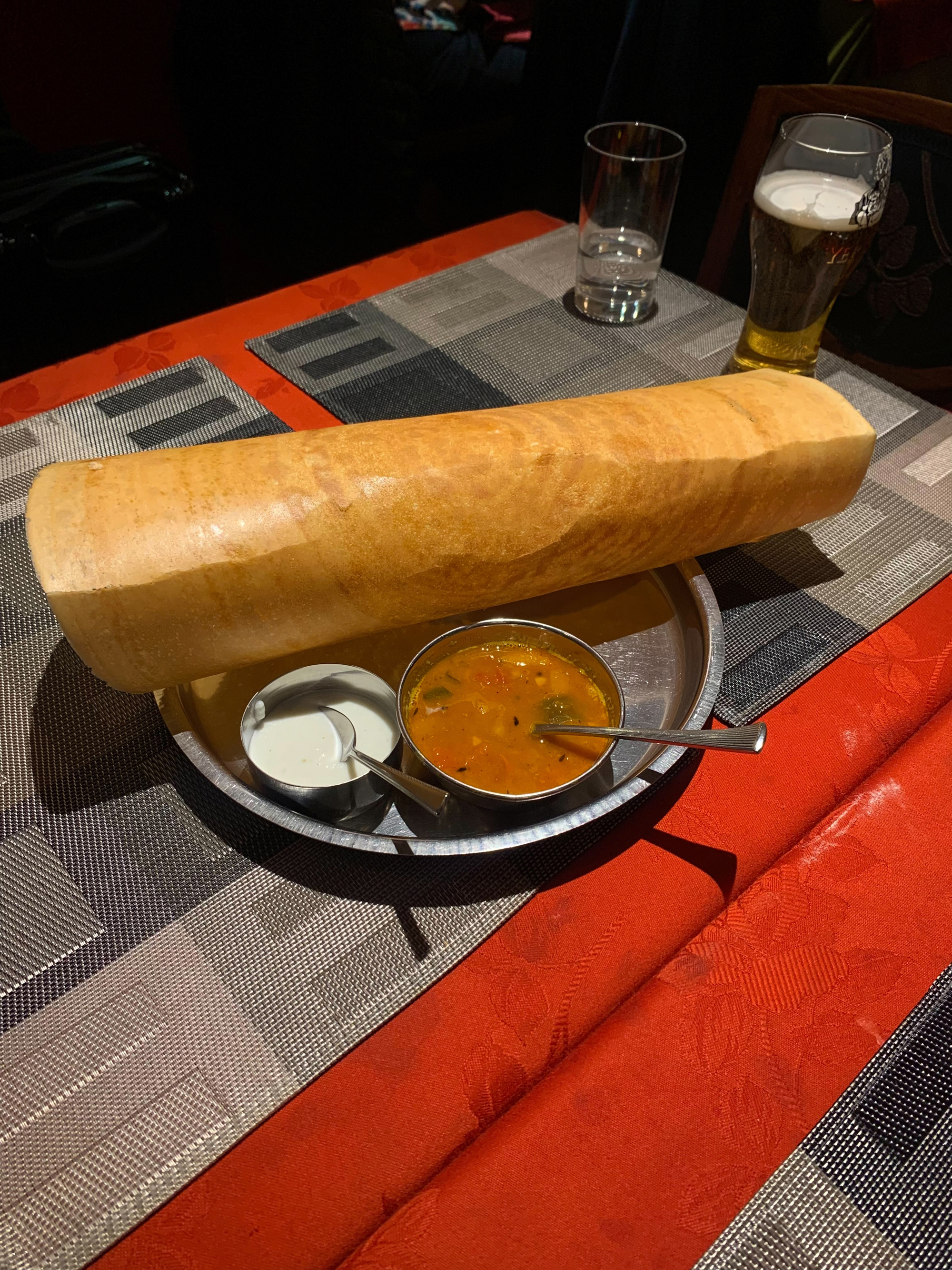 日本でインド料理といえばインネパだった一方で、最近よく目にするようになったのが、南インド料理のお店。温暖な気候の南インドでは、北インドとはまた異なる食文化が発展しました。南インド料理はココナッツ油やココナッツミルクを使ったサラッとしたスープ状のカレーが特徴で、稲作が盛んなため米が主食。「ミールス」というバナナの葉の上に盛り付けられた定食や、米と豆を発酵させてクレープ状に焼いた「ドーサ」も名物。南インド料理はスパイスたっぷりでヘルシーに食べられるイメージもあってか、現代人への人気の高まりをふつふつと感じます。
