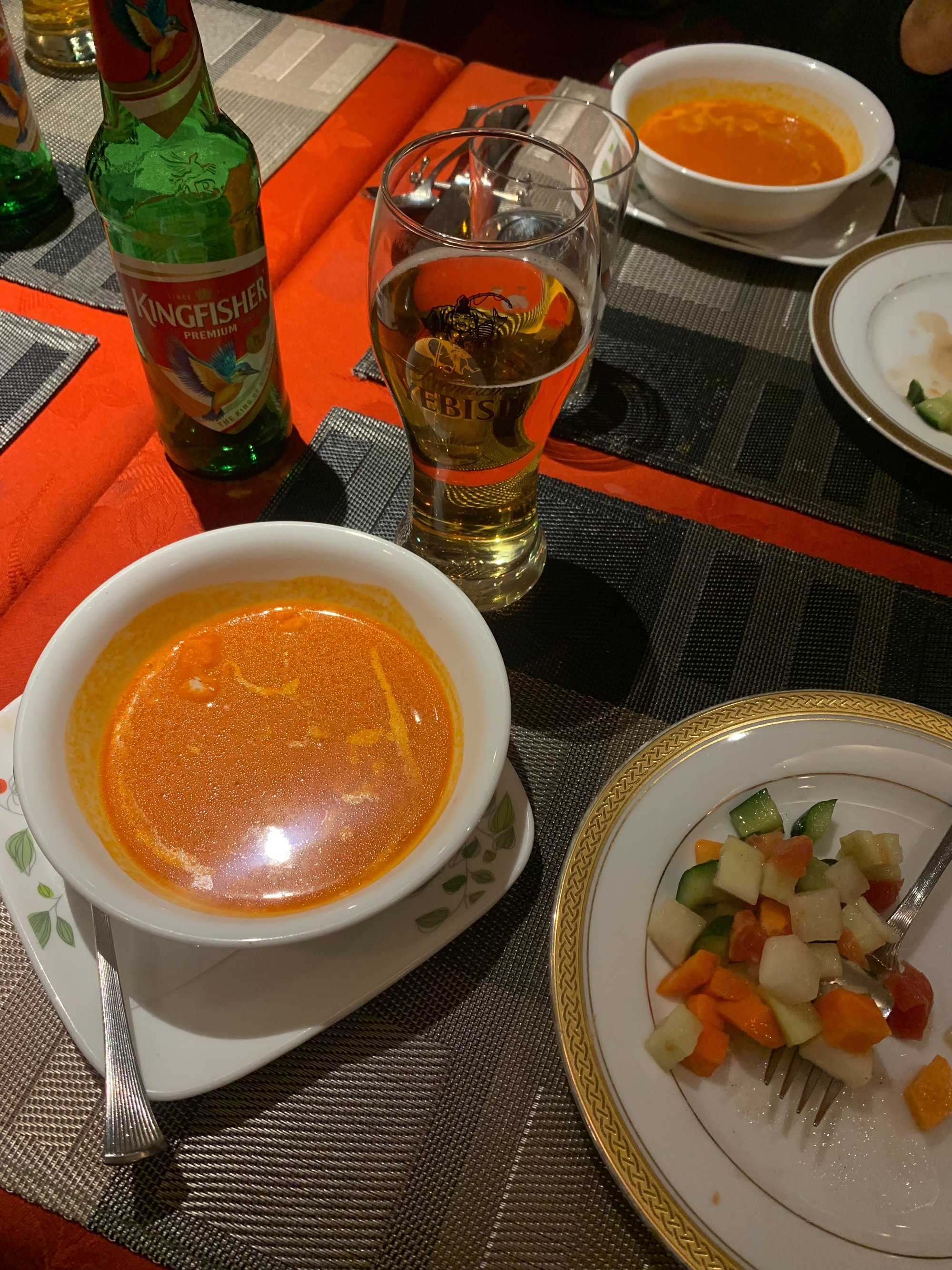 インネパの定番といえばナンとカレーですが、それだけで終わらせてしまうのはもったいない。おすすめは、インネパ飲み。インネパは一品一品がお手頃でありながら、お酒にぴったりなのです。京都にも多くインネパがありますが、先日訪れたのは、今出川ショールーム近くの「ビカシューマハル」。キンとよく冷えたビールに、インドのワイン、じゃがいもが入った揚げ餃子のようなサモサ、ネパール風蒸し餃子のモモ、香り高いビリヤニ…たまりません。インネパ飲みを一度味わってしまうと、食欲そそるスパイスの旨さに癖になること間違いなしです。